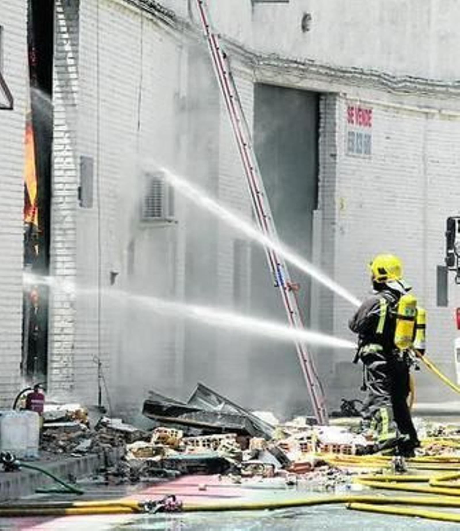 La rápida intervención de los bomberos impidió que finalmente las naves cercanas se vieran afectadas, aunque sí se produjeron desperfectos en las medianeras de los edificios circundantes.