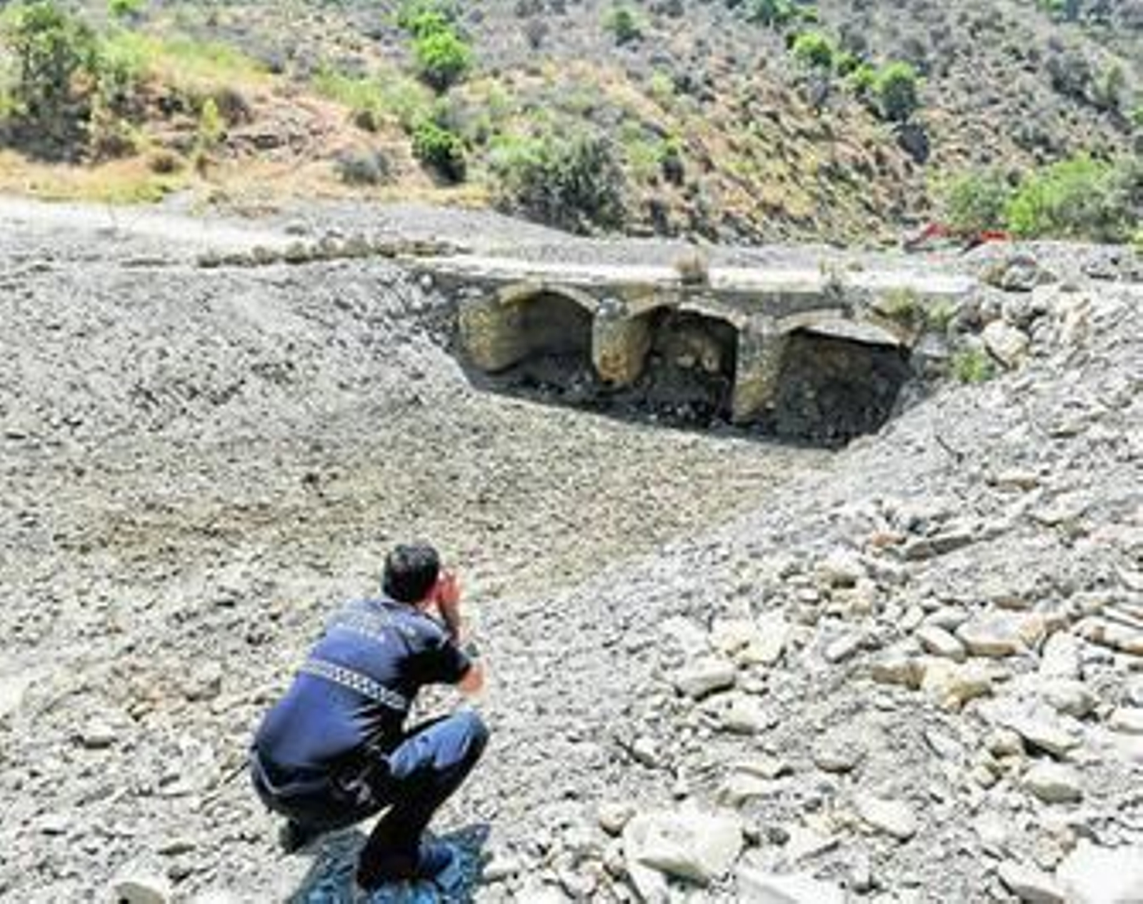 Protección Civil también denuncia los defectos que detecta en la obra civil como en el arroyo Cambrones, donde los diques que tienen la misión de reducir la velocidad con la que baja el agua en caso de riada están empezando a resquebrajarse.
