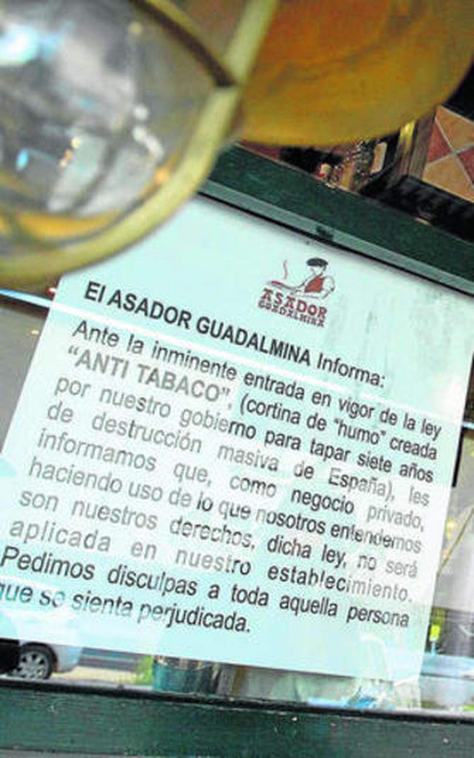 El propietario del Asador Guadalmina de Marbella, José Eugenio Arias, que permite fumar en el interior de su establecimiento, negándose a acatar la reforma de la ley antitabaco, está recogiendo desde el pasado miércoles en su restaurante firmas contra esta normativa para trasladarlas al Defensor del Pueblo. Además, contempla la posibilidad de transformar su negocio en una sociedad gastronómica para que no tenga cabida dicha prohibición.