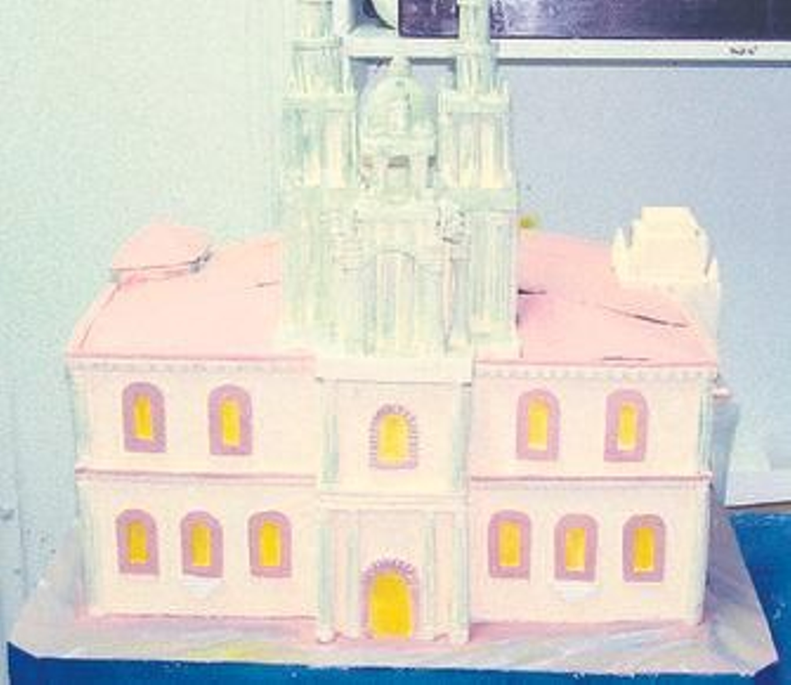 Una muy especial e idealizada réplica de la catedral malagueña, tras haber presidido la cena la noche anterior, se encontraba en ese taller para ser reconvertida en la catedral de Cádiz, siguiente puerto de escala que debía tocar el Van Gogh.