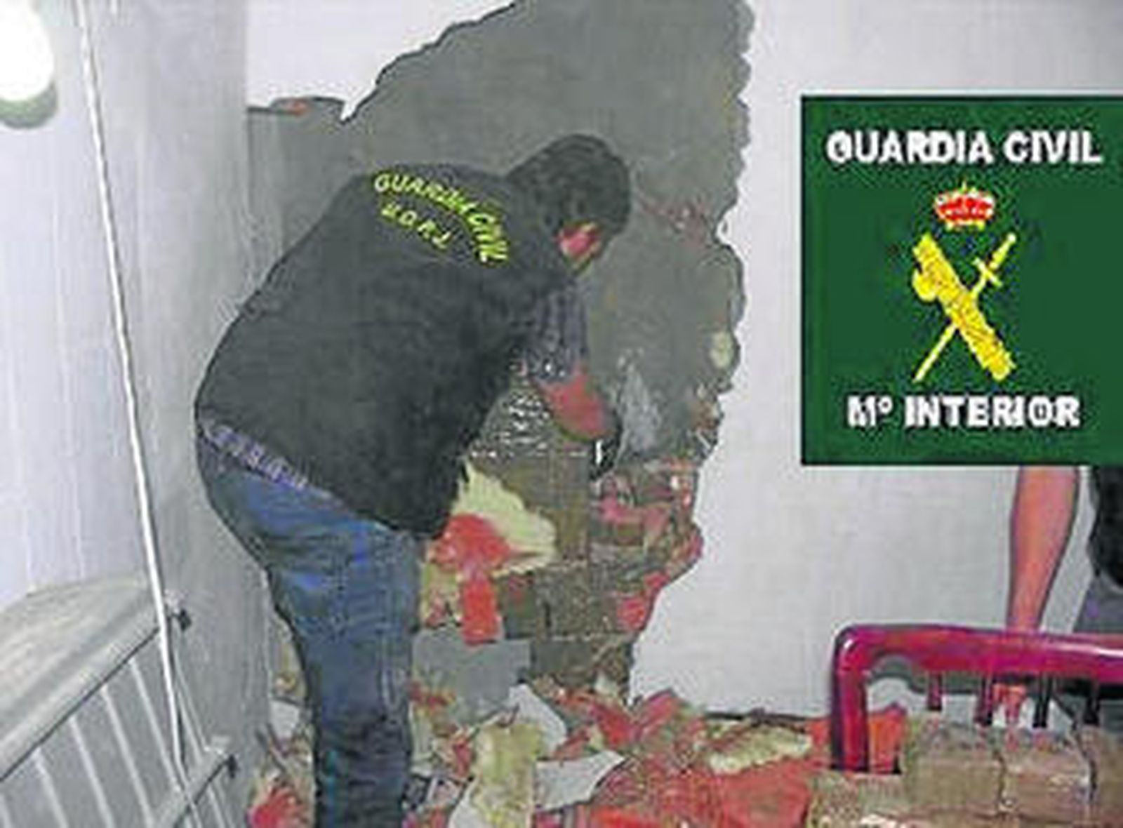 En el momento en el que el hachís estaba en el interior de la nave, una parte era transportada en vehículos y otra era camuflada en el interior de ruedas de repuesto. Igualmente, disponían de una reserva de hachís -200 kilos aproximadamente- en el interior de una falsa pared para disponer de la droga en el caso de pérdida de algunos de los alijos. Posteriormente, a través de las comunicaciones interiores de la nave, accedían a los otros inmuebles, para cambiarse de ropa y salir con toda naturalidad de la zona. Asimismo, a los narcotraficantes les servía dicha nave para ocultarse en caso de percibir presencia policial.