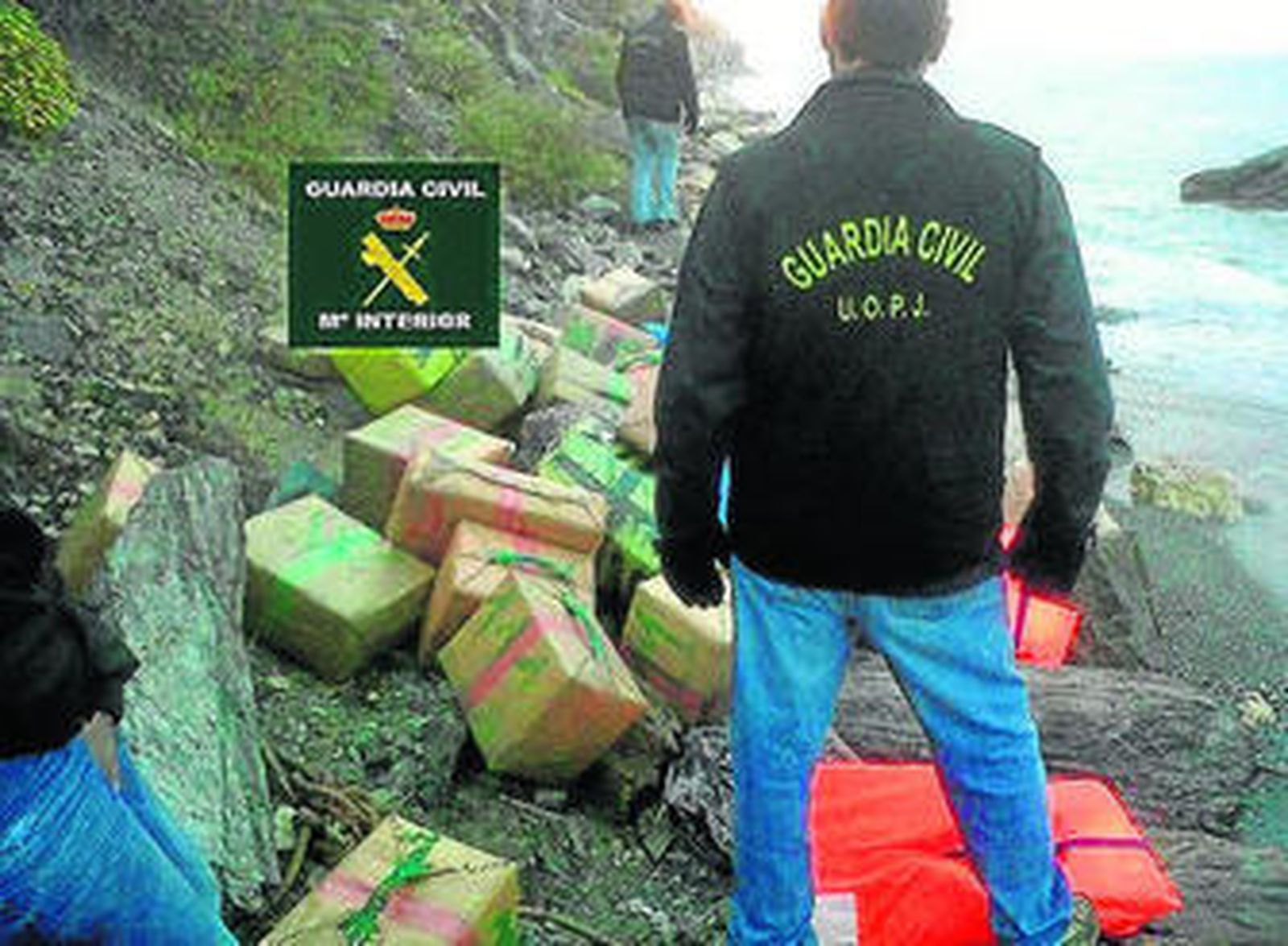 Como aseguró ayer el comandante jefe de la Policía Judicial e Información de la Guardia Civil, José Antonio Carvajal, la estructura de la red estaba tan organizada que cuando sus miembros concretaban la entrada de una embarcación con droga, desplegaban dos equipos con funciones bien diferenciadas. Uno de ellos, compuesto por los denominados aguadores, se encargaban de la vigilancia de la playa y de los lugares estratégicos para detectar la presencia de cualquier vehículo o persona sospechosa. El otro grupo, denominado farderos, se encargaba de ocultarse en el interior de una nave construida por ellos mismos a escasos metros de la orilla de la playa, que incluso estaba comunicada interiormente con casas colindantes, que también habían sido construida por la red de narcotraficantes. Una vez en el interior de la nave, los farderos recibían un curso acelerado para proceder al desembarco y traslado de los fardos. Para ello, se colocaban en dos hileras, una orientada a poniente y otra a levante con el rostro cubierto por un pasamontañas y de esta forma se iban pasando la droga.