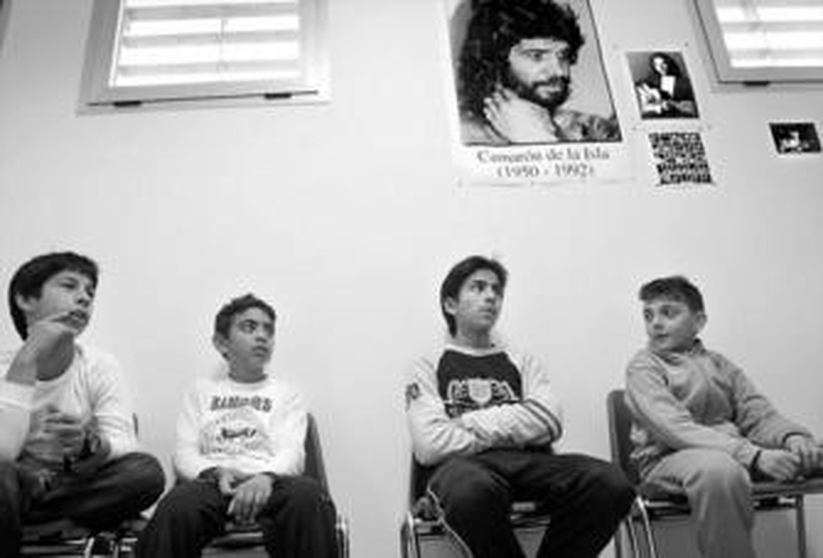Entrar en su aula es vivir una experiencia mágica: las palmas, la guitarra, el baile (sin palabras deja a todos José Miguel Santiago, de 11 años) y el cajón. La atmósfera creada parece única e irrepetible. En el taller está Jesús Rodríguez Ternibén (juventud en caló), un niño de 10 años que canta rap aflamencado y al que se une la voz imprescindible, a sus 9 años, de Evaristo Fajardo El Turista. El nombre artístico lo comparte con su hermana Indara, también rubia de ojos claros y que ya ha compuesto sus temas, que interpreta como nadie: "Enamorada buscando y buscando en mi amor para tenerte, tú sabes que te quiero y no quiero perderte", dice el estribillo. Sólo ahora está recibiendo clases.