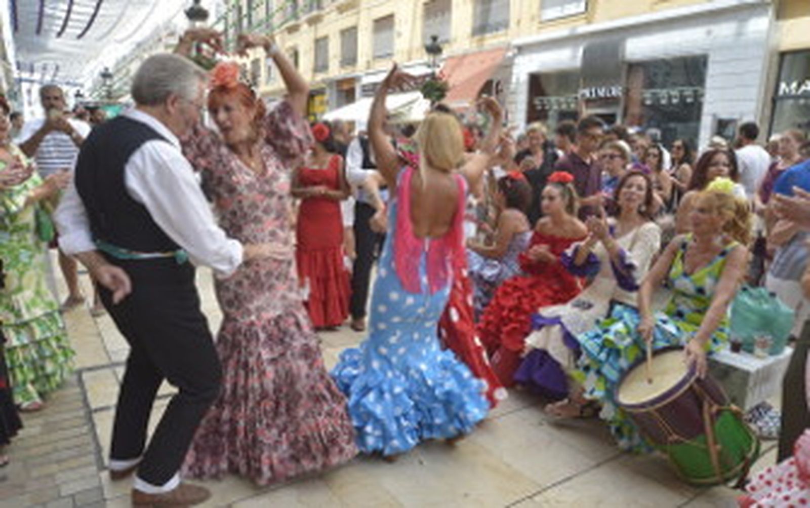 Era la jornada inaugural y la Feria del centro volvió a ser lo que es. Sin más. El momento y el lugar preciso –quizás poco oportuno según sufridores y residentes– para juntarse, para celebrar, para reír, para beber y bailar, para bromear. Para tener el alma de fiesta, en definitiva. En pleno verano, llegando al ecuador de agosto, una fiesta al aire libre es lo más para ese malagueño callejero que no siente ni el calor de las tres de la tarde cuando hay buena compañía y disposición para pasarlo bien. El mismo que no sabe de límites, al que se le quedan cortas las horas y no renuncia a seguir disfrutando aunque el reloj ya marque las 19:00. El toque de queda no sirvió de mucho. La plaza de la Constitución no se descargaba, ni la calle Larios, ni el resto, a pesar del bando municipal. Si no había música en el altavoz la ponían los paseantes parados en cualquier esquina. Un grupo hizo suyo el escenario vacío de la calle Strachan para taconear, silbar y gritar a sus anchas. Su juerga, quedaba bien claro, no había terminado.