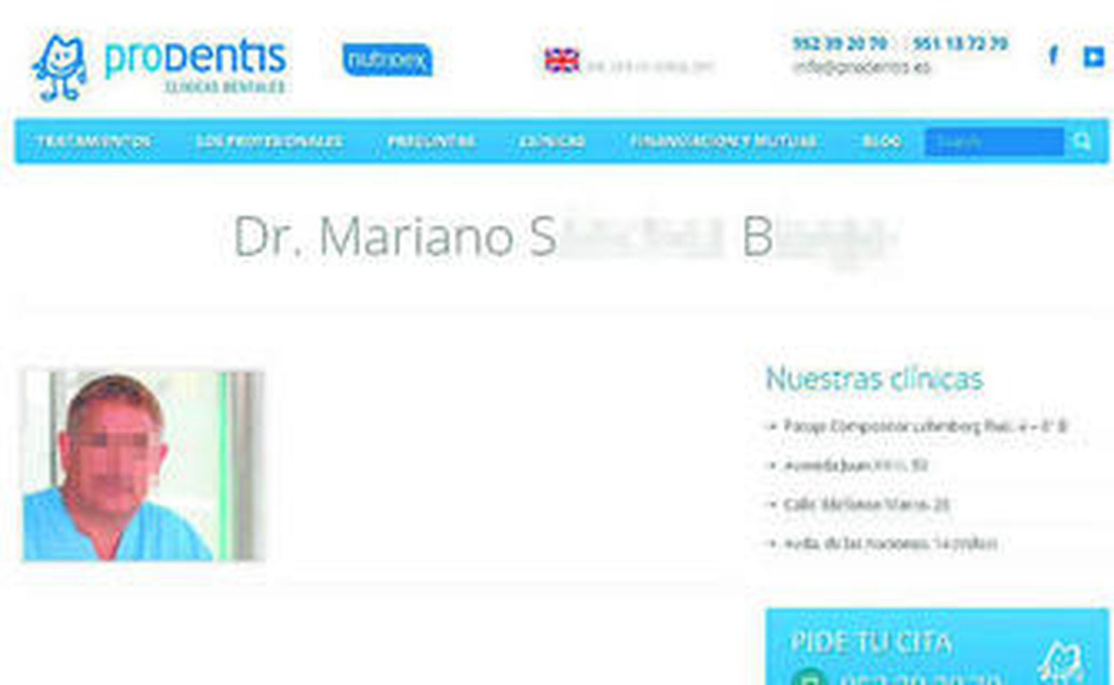 Antes de eliminar su nombre de la web, la dirección de la clínica malagueña Prodentis explicó a preguntas de este periódico que no conocía las denuncias que había en Sevilla contra este médico y que Mariano S. B. aparece en la web como parte de su equipo de profesionales "desde hace un mes y medio" y que "no ha llegado a hacer una operación" al estar de viaje en Rusia y Gran Bretaña. La gerente, Elisa de Rojas, añadió que Mariano S. B. se puso en contacto con la clínica este verano para colaborar como cirujano maxilofacial y que aceptaron porque "ha sido un prestigioso profesor de cirugía de implantes, daba cursos y lo conoce desde hace muchos años".