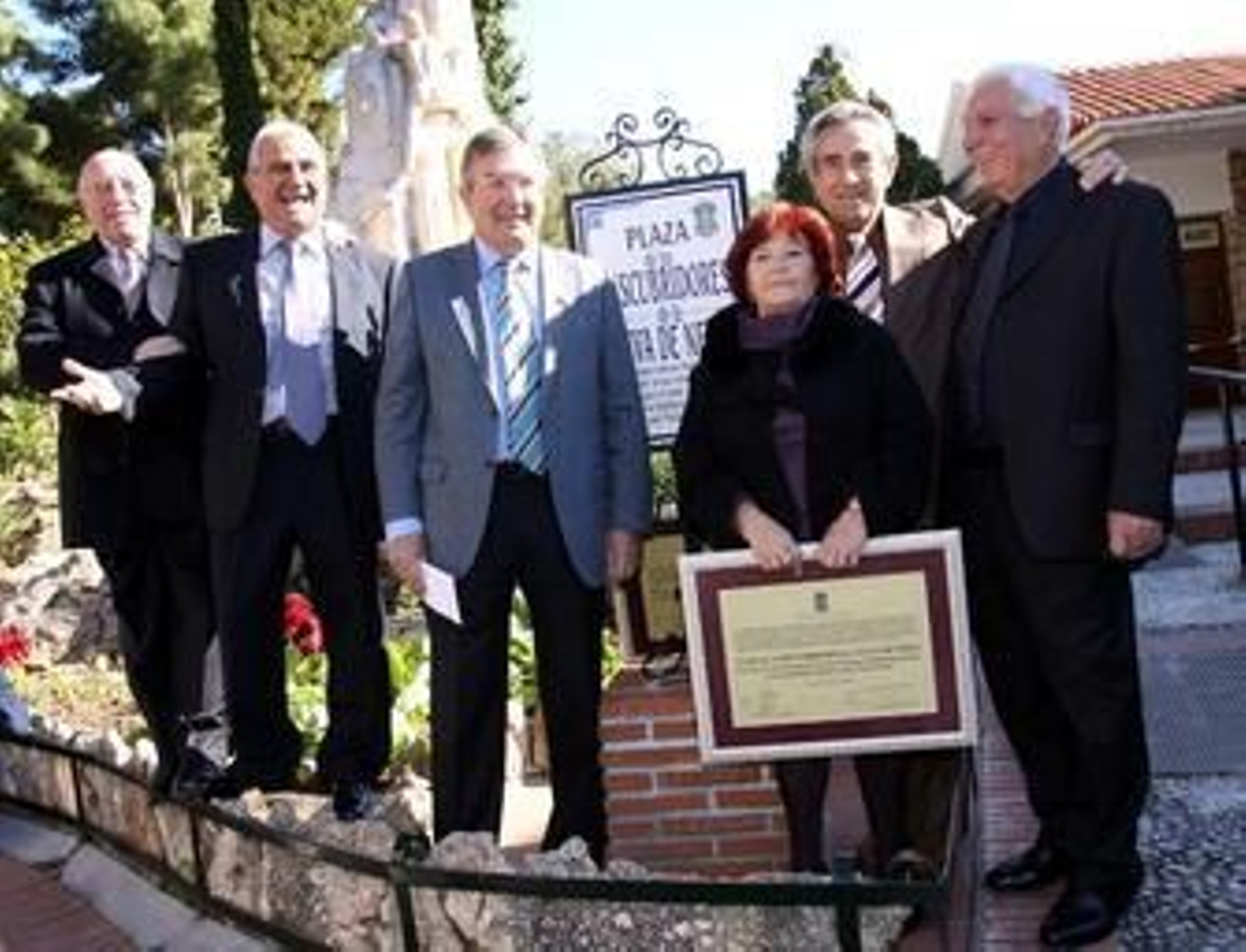 Y orgullosos en su plaza, los cinco amigos posaron junto a la placa que recuerda que ellos fueron los descubridores de este bien de interés cultural cuyas visita sólo supera la Alambra. Una reproducción del acuerdo plenario adoptado en 2005 por la Corporación nerjeña atestigua su hazaña. Amigos, familiares, políticos, colectivos y empresarios de la localidad del Balcón de Europa acompañaron a estos aventureros de en medio siglo apenas se han acordado. Como ellos dice, "los últimos de la fila" tienen un reconocimiento. La Cueva de Nerja ya está a la vista de todos.