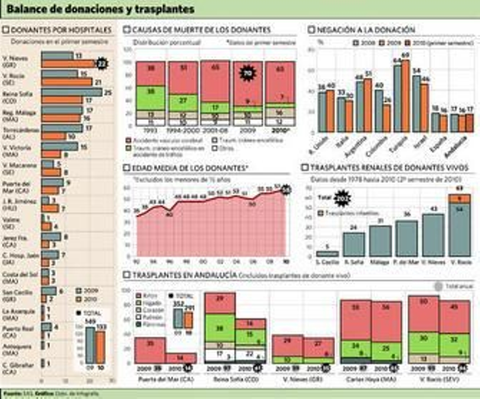 Los trasplantes de órganos han descendido un 18% durante el primer semestre del año, con 291 operaciones de este tipo realizadas en los hospitales andaluces (274 trasplantes con órganos procedentes de donante fallecido y 17 injertos renales de donante vivo). El balance del SAS también es negativo en la donación de órganos, que se ha reducido un 10% durante los primeros seis meses del año frente al mismo periodo del año anterior, si bien el rechazo familiar a ceder los órganos de un ser querido fallecido es similar a la de 2009, con una tasa del 17%.
