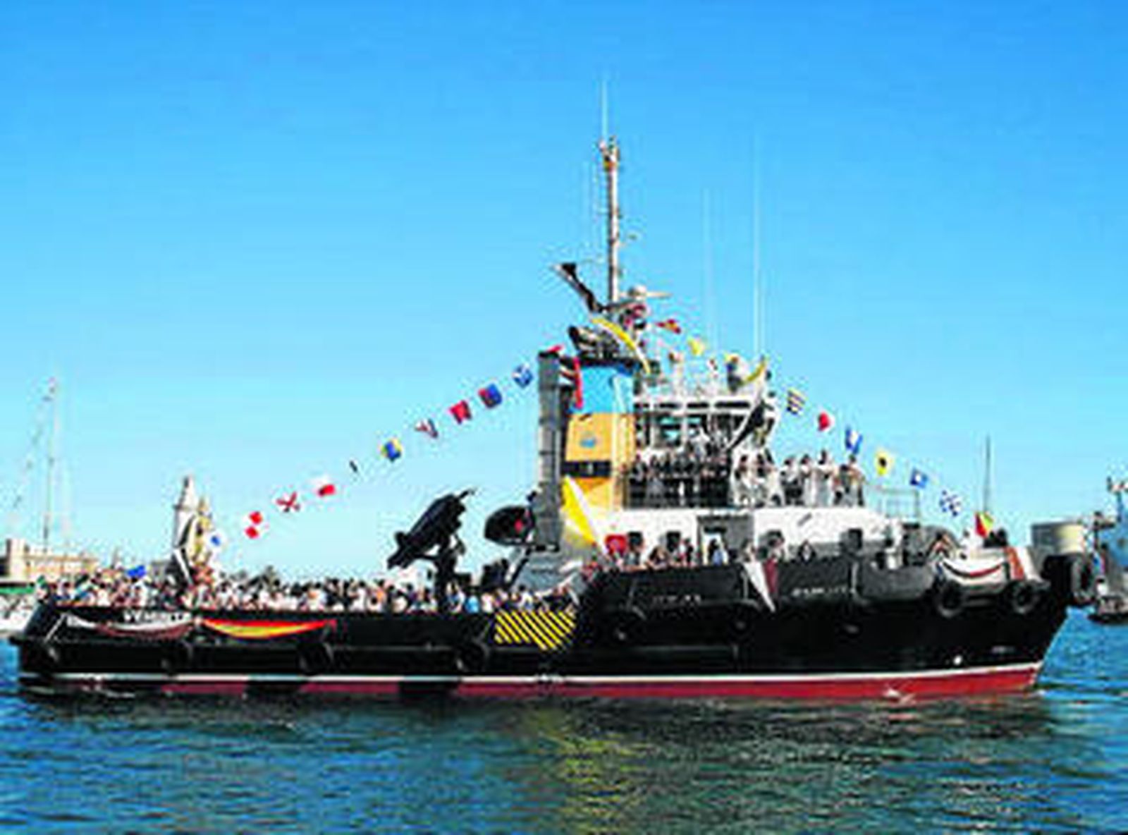 El remolcador que se encarga de pasear a la patrona de las gentes de la mar, además de lucir una guirnalda de banderas, coloca en determinadas zonas de su borda largas piezas de tela con los colores de las banderas de España y Málaga, amén de los de la Virgen del Carmen. Una jornada festiva que recuerda una olvidada forma de adornar barcos.