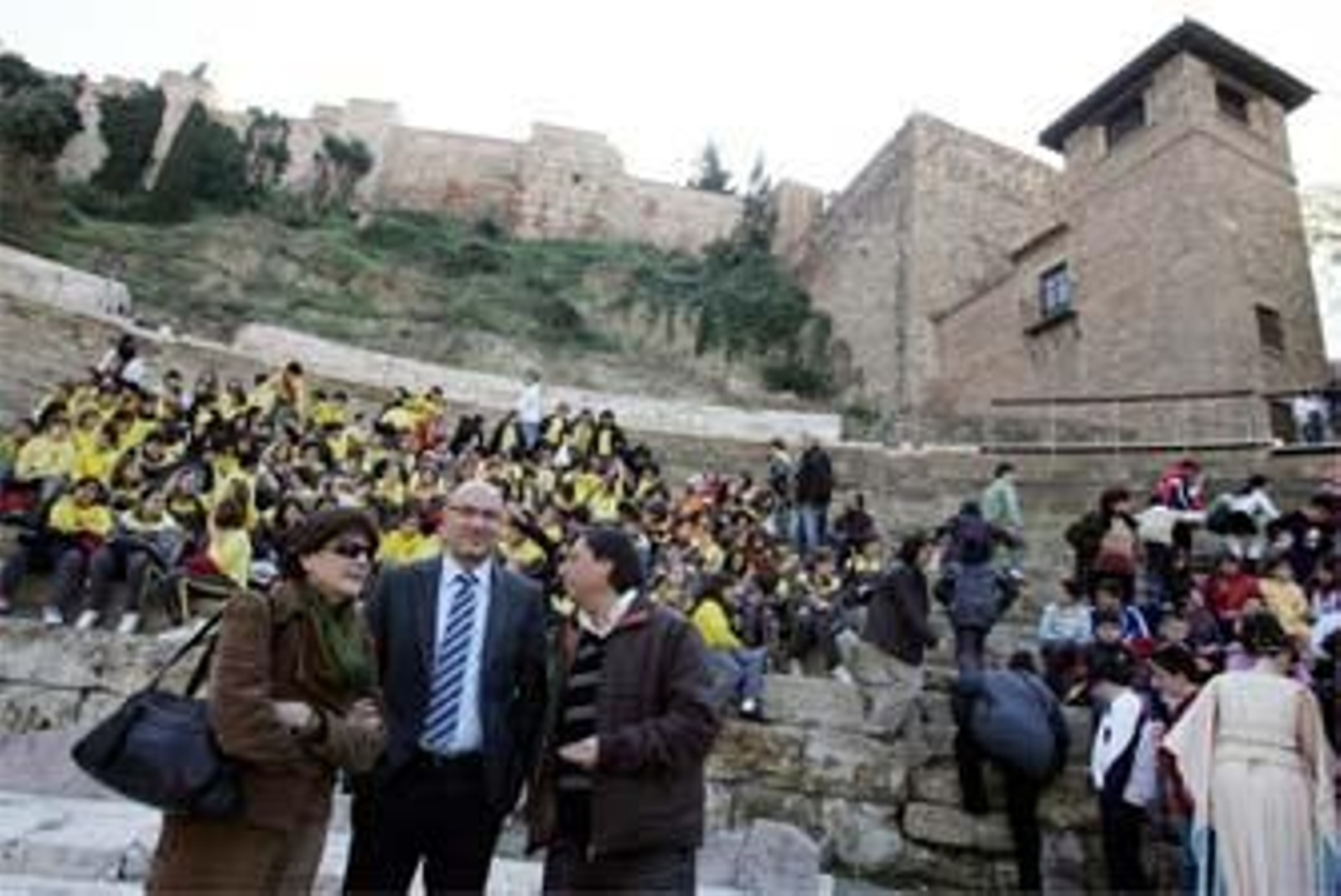 Alrededor de 400 chavales de cinco colegios de la provincia de Málaga (Añoreta, Platero, Maravillas, Virgen de Belén y Ntra. Sra. de Caños Santos) han participado esta mañana en un acto para celebrar, de una manera cultural, el próximo día de Andalucía. Los alumnos, de entre 8 y 12 años, han podido conocer en el propio Teatro Romano de Málaga cómo eran las representaciones de aquella época. Un grupo de actores de la compañía Trompecoco ha interpretado un fragmenteo de la obra La Comedia de la Olla, de Plauto, mientras que otros artistas (como Odin, Othman y Manolo Carambolas) han ofrecido espectáculos circenses con malabares, acrobacias y equilibrios.