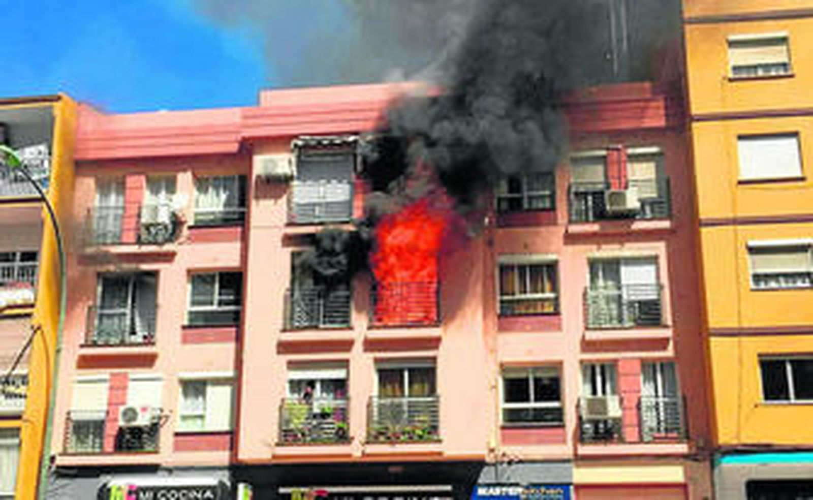 "Estaba duchándome y oí varias explosiones. Me asomé y vi salir humo y fuego. Se rompió el cristal de la ventana". Son las palabras de una de las vecinas que ayer relataba cómo se vivió el incendio de un segundo piso que se saldó con el fallecimiento de una mujer de unos 70 años que se encontraba en el interior. Dos policías nacionales y una residente, a la que los bomberos rescataron, tuvieron que recibir asistencia sanitaria por inhalación de humo. La llamada de un particular en la Sala del 091 de la Policía Nacional alertaba de que se estaba quemando una vivienda situada en el número 82 de la calle Héroe de Sostoa, en la barriada de Carretera de Cádiz. A su llegada, los agentes, según fuentes cercanas al caso, se adentraron en el edificio y fueron alertados por los gritos de una mujer, que desde el interior de un inmueble pedía auxilio. Los bomberos tuvieron conocimiento de lo ocurrido poco después, hacia las 11:15, por lo que hicieron un llamamiento a los ciudadanos para que, en caso de incendios, contacten con la Sala del 080, a fin de evitar retrasar el tiempo de respuesta.