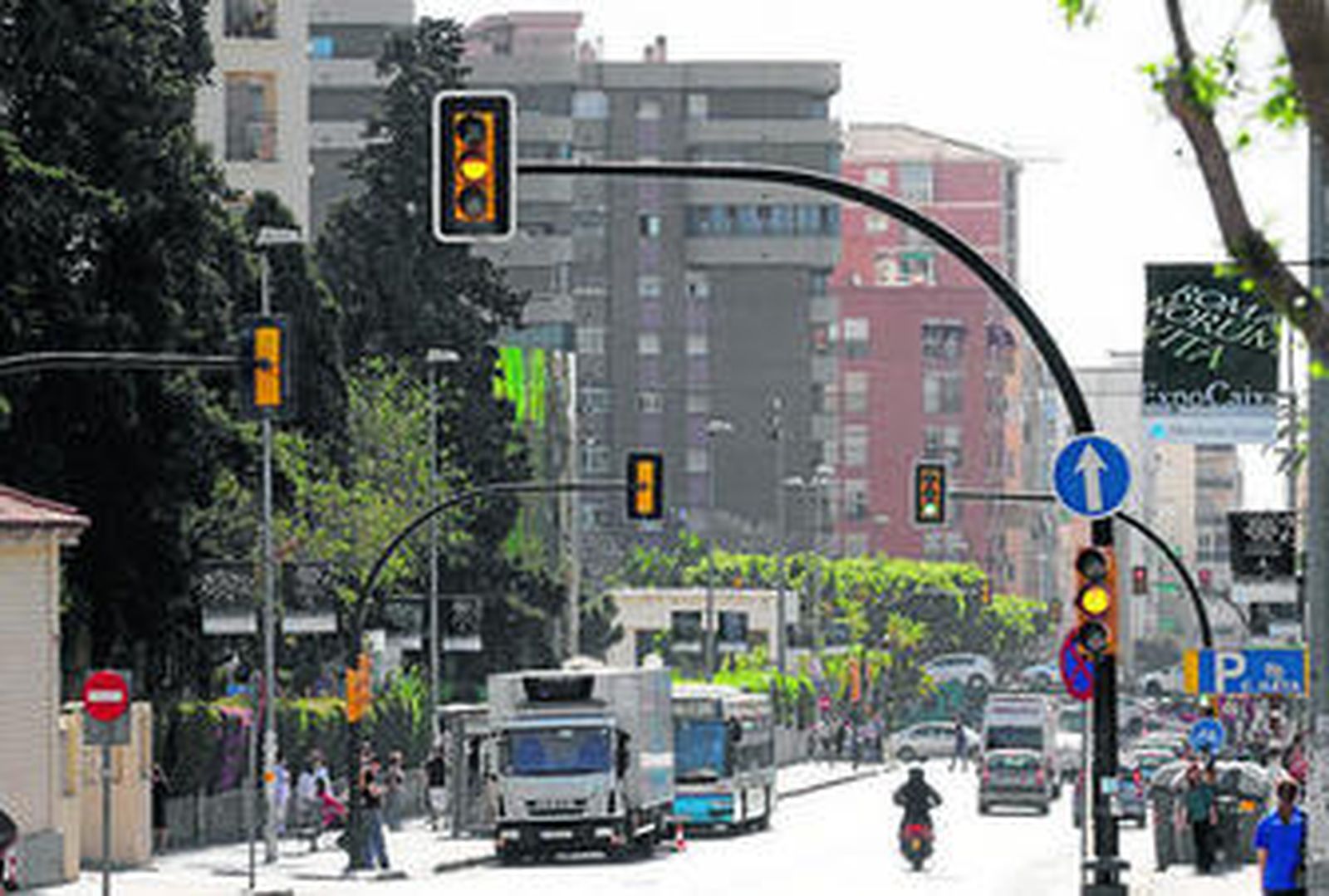 En la tercera parada de la avenida, junto al estadio de la Rosaleda, suben tres muchachas que se sientan en la parte trasera del autobús. Las tres son morenas y bajitas, y su acento delata su origen latinoamericano. Un chico que va en silla de ruedas y otro que le acompaña en pie y que habla a través del teléfono móvil se quedan en la acera y solicitan al chófer que haga descender la rampa. La operación acapara la atención de todos los viajeros. El chico del móvil empuja la silla de ruedas y coloca a su ocupante sin demasiado cuidado en la zona habilitada a tal efecto. Después se separa, se sienta en la zona intermedia y sigue hablando en voz muy alta mientras pone los pies en el asiento contiguo. El joven de la silla de ruedas sonríe al niño pequeño que viaja en las rodillas de su madre, la que subió con el cochecito en la primera parada, y luce una dentadura a la que faltan no pocas piezas. Lleva en las manos guantes grises de ciclista que dejan los dedos sin cubrir y en el cuello un cordón dorado con una imagen religiosa. Su compañero, si es que puede considerarse tal, sigue hablando a través del móvil con los zapatos en otro asiento e inicia una discusión que empieza a hacerse violenta. El automóvil atraviesa la Avenida Luis Buñuel y llega a Doctor Marañón. En la primera parada sube otro señor mayor con el pelo cano y otra gorra azul. Ya van tres a bordo.