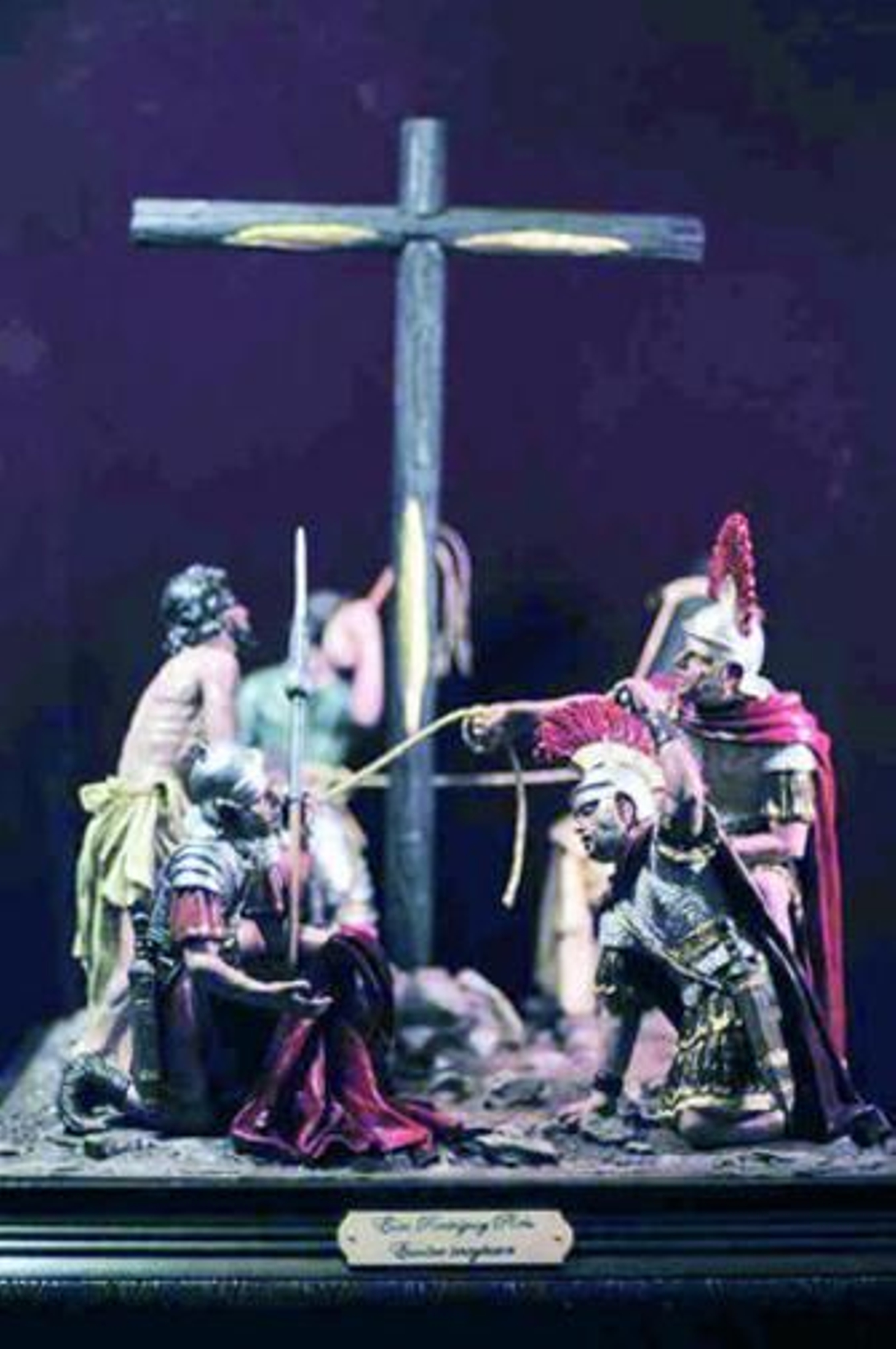 La Crucifixción, por su parte, ya tiene un proyecto de grupo escultórico para que acompañe al Crucificado de Bonilla Cornejo, de 1993. Se trata de una propuesta del onubense Elías Rodríguez Picón. El boceto consta de siete imágenes secundarias. En el frontal, tres soldados se disputan a los dados las vestiduras de Cristo. Detrás, un sayón a conduce a los dos ladrones (San Dimas y Gestas) a la cruz.