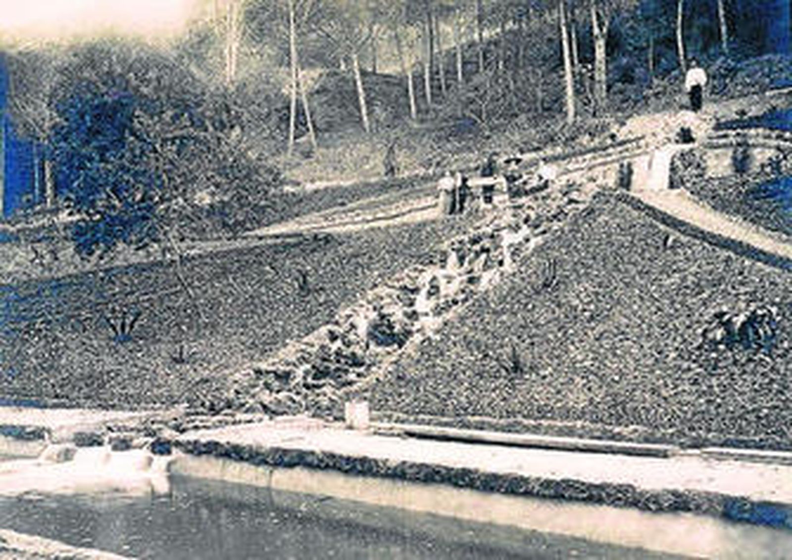 El matrimonio Echevarría-Echevarrieta fueron los artífices de la zona del jardín que comprende el estanque de la ninfa, la cascada de piedra y el emblemático mirador que se ha convertido en un símbolo