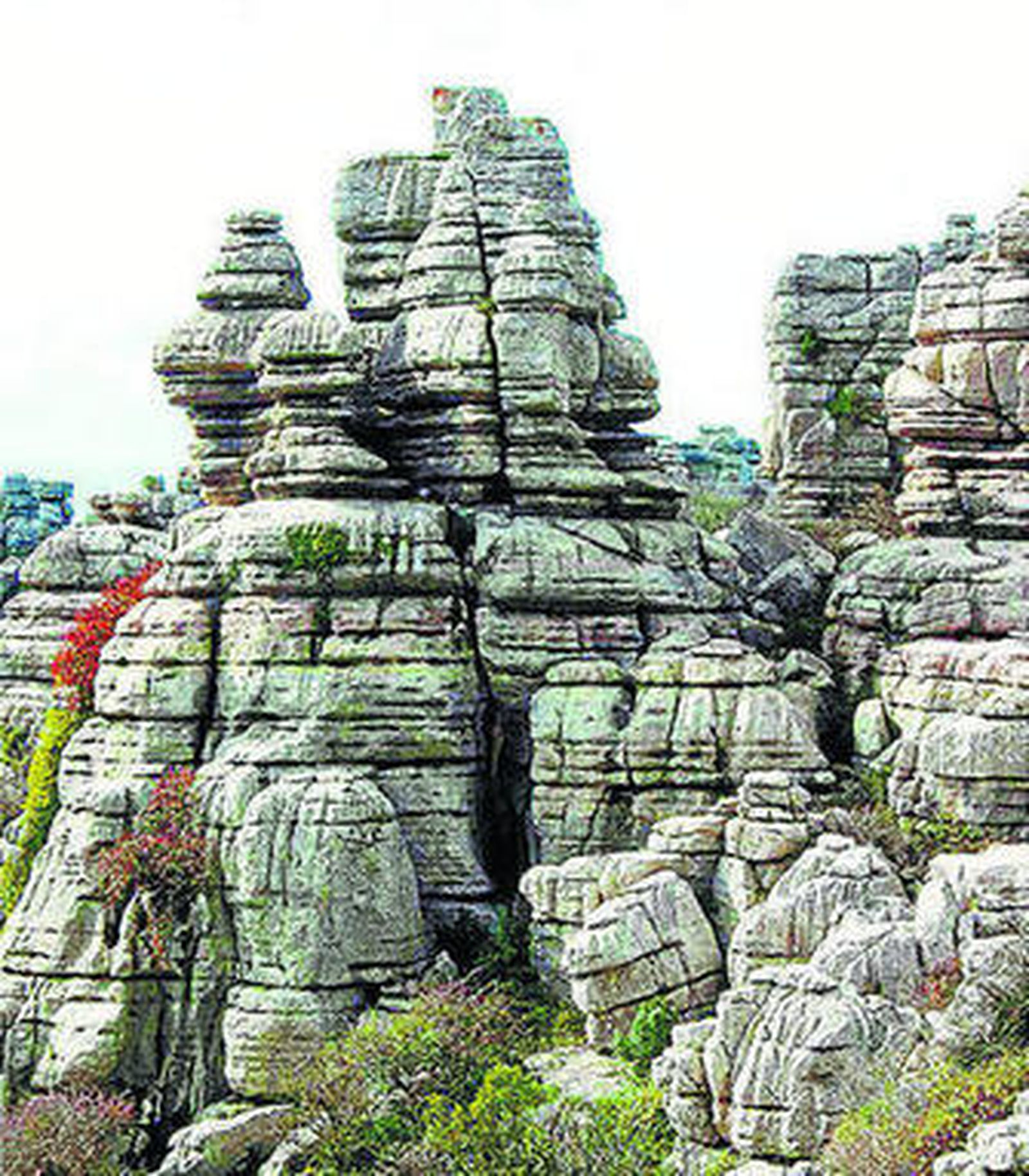 Los científicos contarán, por ejemplo, que hace 200 millones de años el mar Tethys cubría gran parte de Andalucía y que en su fondo se depositaban fangos carbonatados que pasados millones y millones de años se transformaron en las rocas que hoy constituyen El Torcal. También explicarán que forma parte de la cordillera Bética, originada por el choque de las placas tectónicas Eurasiática y Africana, hace 70 millones de años. Y qué es un karst, denominación que alude al paisaje resultado de un proceso que comienza con la disolución del dióxido de carbono de suelo y la atmósfera al llover. Ese agua ácida corroe los minerales solubles de las rocas, pero no por igual porque las calizas nudolosas se erosionan más fácilmente, creando entrantes y salientes que dan las características formas de platos y tornillos que se encuentran en El Torcal.