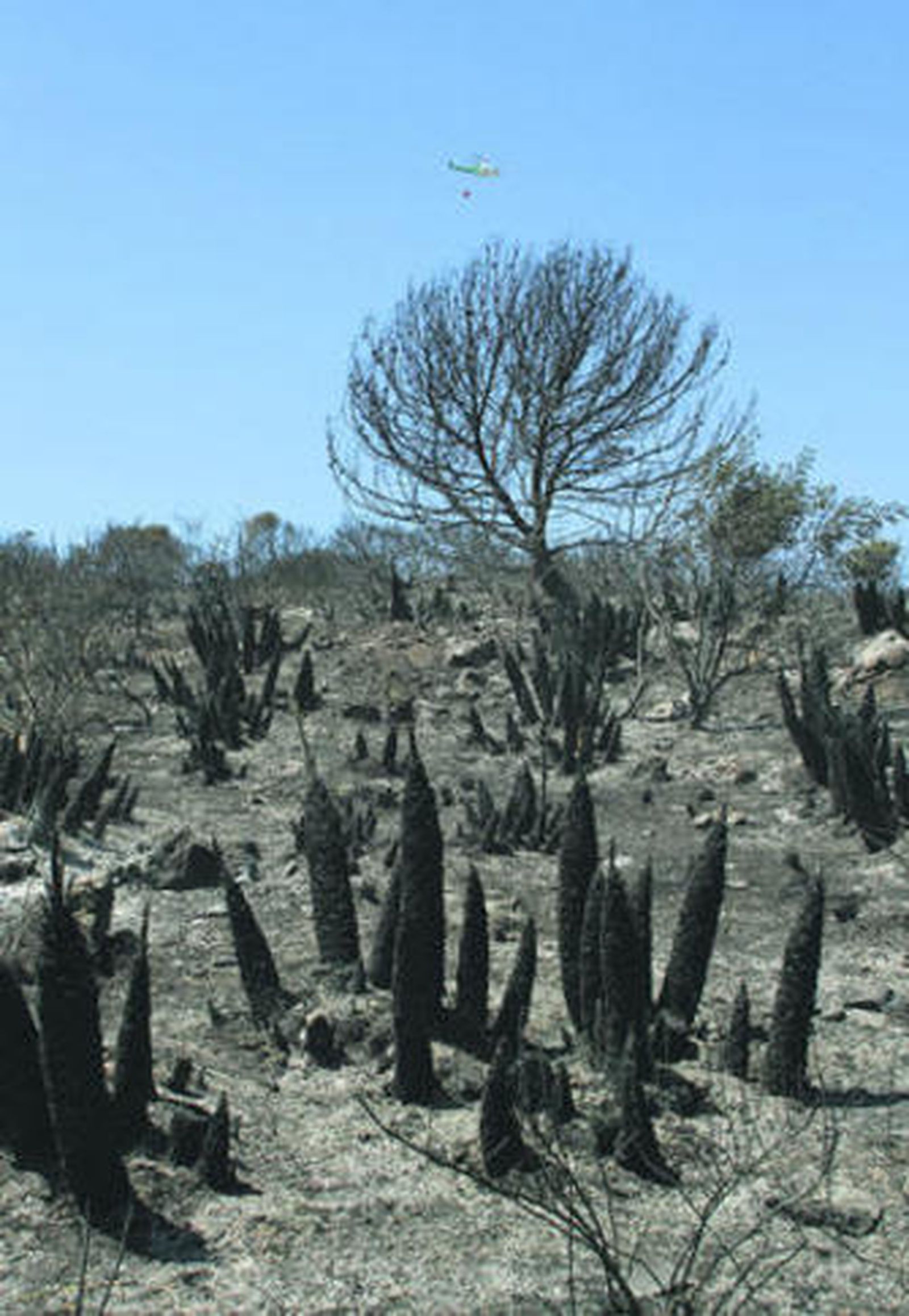 A primeras horas de la tarde las familias pudieron volver a sus casas, de las que salieron por temor a que las rachas de viento dificultaran la extinción de las llamas · Se ha quemado matorral y monte bajo