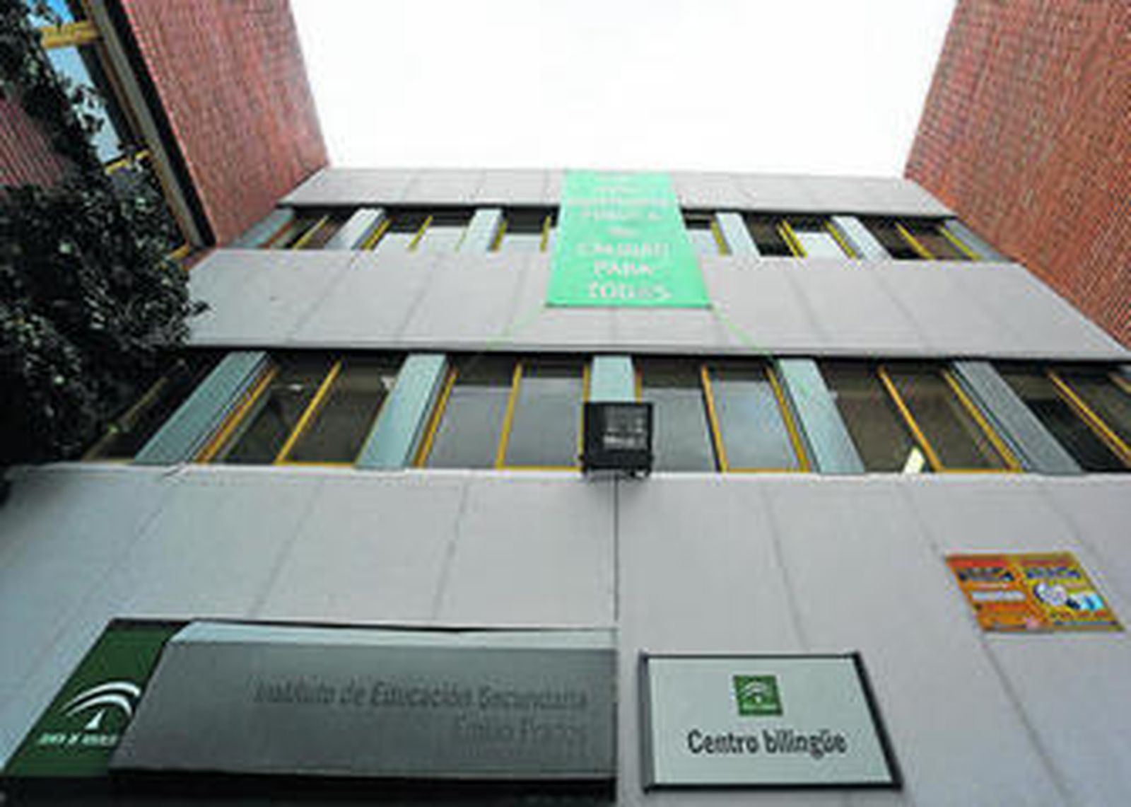 De manera asamblearia, el claustro de este instituto de la Carretera de Cádiz decidió reducir las actividades no lectivas. Ya no se preparan teatros, bailes o fiestas para los días señalados como el de la Constitución o el día de Andalucía. Ahora estas efemérides se celebran en el estricto ámbito académico y "como marca la ley". Además, todos los miércoles el claustro viste la camiseta verde y una pancarta en la fachada principal reclama más apoyos a la enseñanza pública.