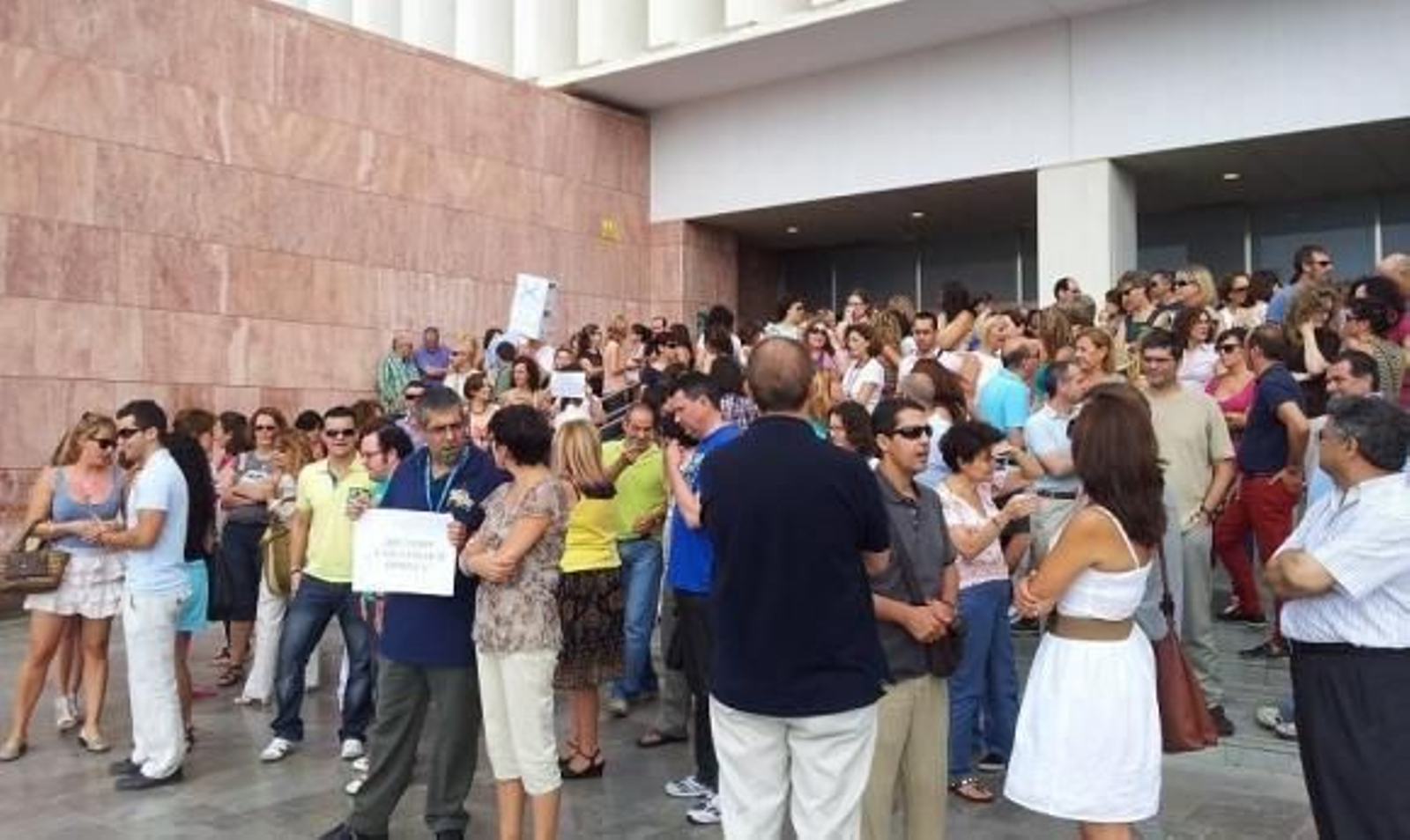 El sindicato de funcionarios CSI-F se ha manifestado esta mañana a las 11:00 ante la Delegación del Gobierno de la Junta y ante la Hacienda del Estado, para protestar en ambos casos, por los recortes salariales que han tenido, en primer lugar por la Junta de Andalucía y la semana pasada por el Gobierno Central, y que los ha convertido en los trabajadores públicos con mayores recortes en toda España.