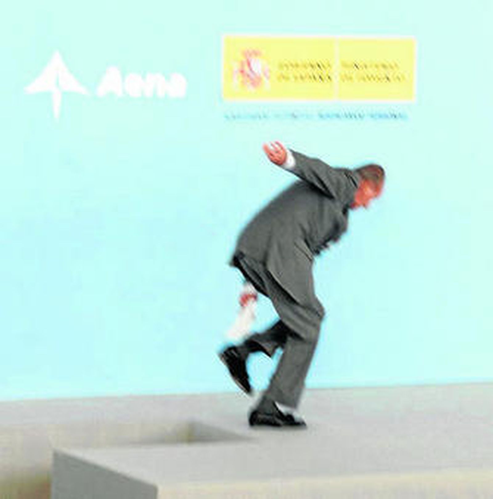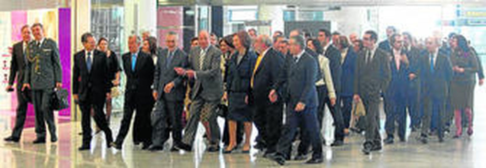 Conocida es la amabilidad del Rey y su sentido del humor. Pese a que el acto de ayer fue excesivamente formal -lo que exige el protocolo- e incluso algo triste -la música que pusieron al final de la presentación invitaba a la melancolía y la añoranza más que a la feliz inauguración de una nueva terminal-, Don Juan Carlos, acompañado de Doña Sofía, contentó a todos. No paró de estrechar manos y sus palabras dejaron un buen sabor de boca entre los asistentes. Hubo hasta un momento de tensión pues, al subir al escenario, tropezó con un traicionero escalón y a punto estuvo de irse al suelo aunque logró recomponer la figura y salir airoso con una sonrisa del percance. El público mantuvo el silencio a pesar del susto.