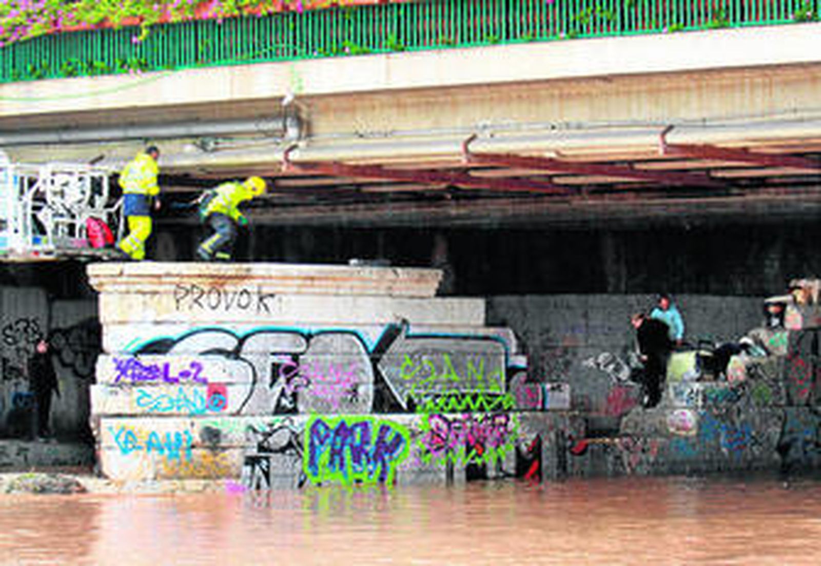 En la carretera Azucarera-Intelhorce quedaron varados en mitad de la calzada una docena de vehículos, entre ellos el flamante Alfa Romeo de Alonso Domínguez. "Serían las 9:30, estábamos atascados en la calle, cuando empecé a ver que el coche de enfrente flotaba. Justo entonces vi que el mío también, que se iba para los lados y empezaba a entrar agua por todos sitios". Dos horas después, este conductor optó por descalzarse para alcanzar la entrada de una nave industrial y allí esperar al servicio de asistencia en carretera. "He visto lo menos a nueve grúas llevándose los coches toda la mañana".
