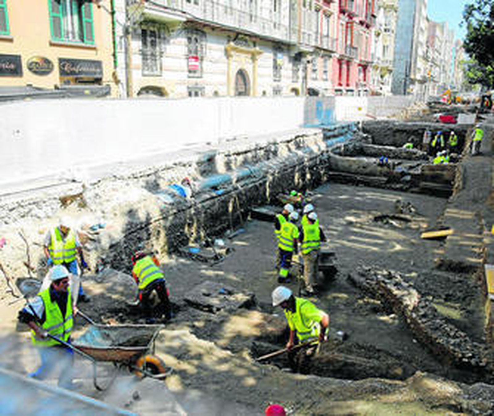 La intervención urbana tiene un plazo de seis meses, a contar desde que arrancaron las operaciones a principios de enero. Sin embargo, desde ese momento transcurren ya dos meses con la obra estancada en las labores de arqueología. Sobre ello, la delegada de Cultura, Monsalud Bautista, explicó que se está documentando lo que se encuentra, que coincide con la planta de las atarazanas.