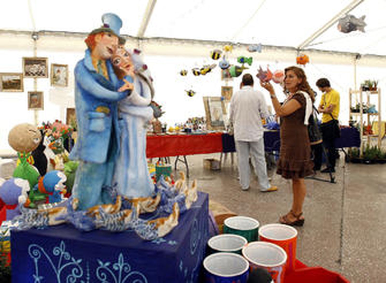 En la carpa hay cojines, bufandas, adornos, pinturas y macetas realizadas por los enfermos. No sólo pueden verse. También pueden comprarse. Los precios son muy asequibles. El dinero recaudado se destina luego a excursiones y a actividades de ocio con los pacientes.