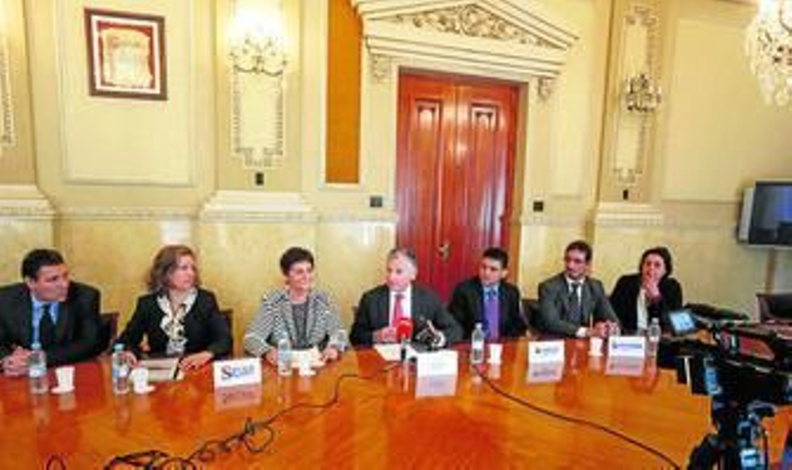 El presidente de la Autoridad Portuaria, Paulino Plata, y la directora general de la base operativa de Sallum Lines en Amberes, Greta Beudeker, junto a representantes de Noatum Container Terminal Málaga y Marmedsa Noatum Maritime, presentaron ayer la línea, que transportará carga rodada, consistente en vehículos, en su mayoría usados; furgonetas, camiones y maquinaria, desde tractores agrícolas hasta maquinaria pesada de obra pública.
