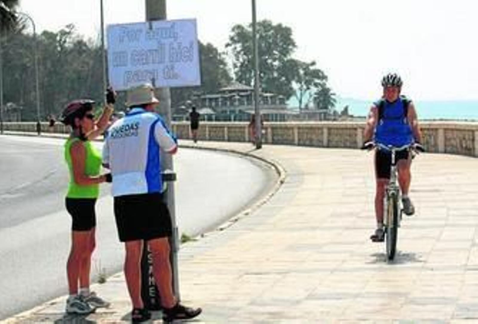 El punto del conflicto se encuentra en el tramo del paseo marítimo que une el tranvía con los Baños del Carmen, donde la acera se estrecha considerablemente, hasta medir 0,85 metros, donde bicicletas y peatones no pueden pasar con facilidad e incluso en numerosas ocasiones se ven obligados a bajar a la carretera con el riesgo que esto conlleva. Lo que piden es que provisionalmente, y hasta que el carril litoral se lleve a cabo, se elimine uno de los tres carriles destinados ahora a los coches, garantizando una separación entre el carril bici-peatón y los otros dos, ya sea por pivotes o por cualquier otra separación y así garantizar un lugar de paso seguro. La pelota está en el tejado del Ayuntamiento, que ya cuenta con la propuesta.
