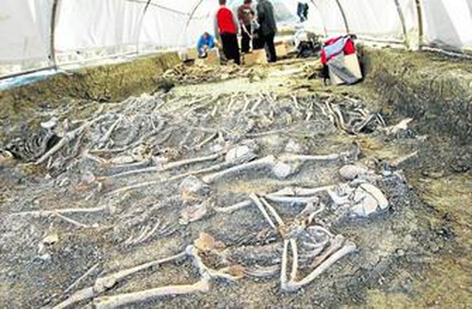 Restos de asesinados en una de las fosas del antiguo cementerio de San Rafael.