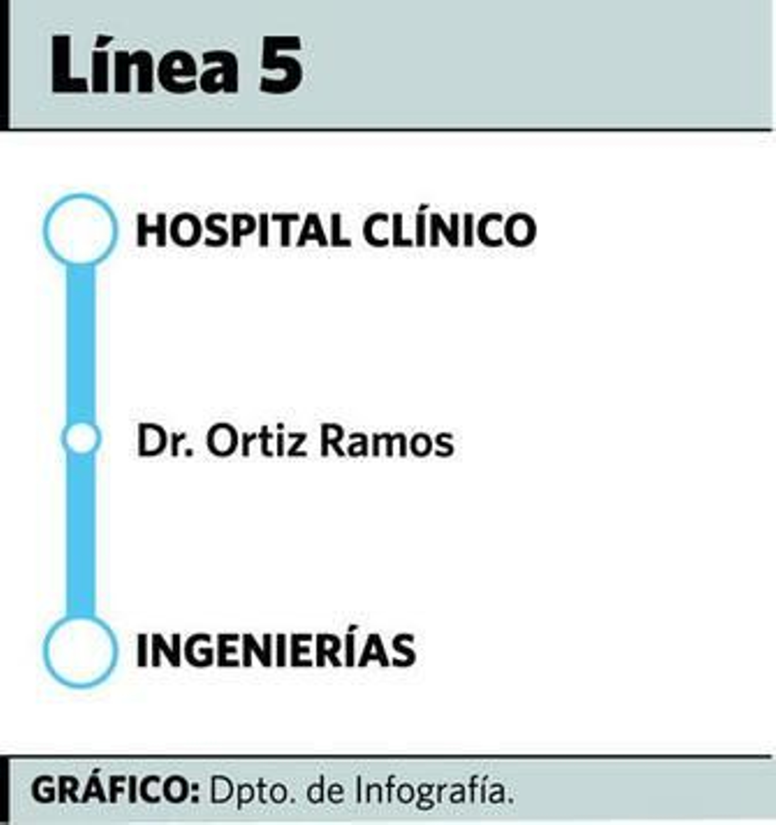 En su breve trayecto de siete minutos desde el Clínico hasta las nuevas Ingenierías de la UMA, la línea 5 de la EMT transita por la Málaga futura para dar cuenta del desierto