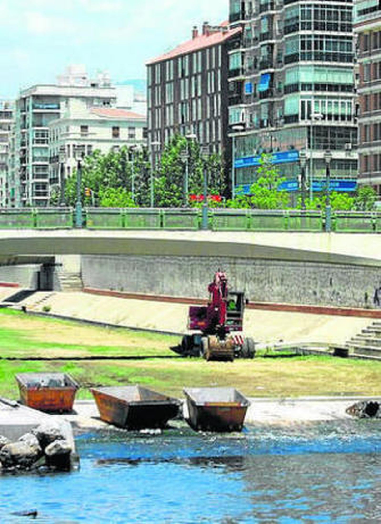 Jiménez explicó que, a la espera de perfilar algunos detalles más, la propuesta consiste en verter hormigón líquido sobre el fondo de escollaras que hay en esta parte del cauce, creando una base sólida y firme con una cierta pendiente. Ello, apuntó, permitirá que los lodos que puedan acumularse sean desplazados hacia el mar con el movimiento natural del agua. Al tiempo, esta solución facilitará las labores de limpieza de los materiales, que, ante la falta de oxígeno, son la principal fuente del hedor que padecen desde hace años los vecinos del entorno en los meses estivales.