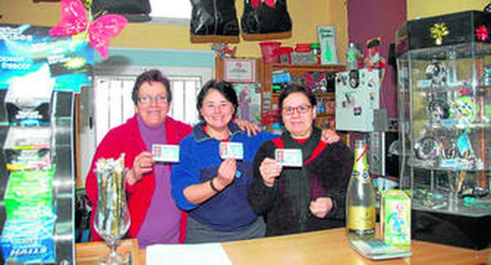 Ayer, a las doce, allí no había ni champán ni caras sonrientes, pero sí un continuo goteo de clientes que entraban bien para cerciorarse de que la suerte había pasado por allí, bien para comprar un décimo para el sorteo del Niño. Una mujer con acento extranjero pidió un número que acabara en seis y no ocultó su decepción porque "compré aquí para el sorteo de la Navidad, me llevé casi todas las terminaciones pero ninguna del seis".