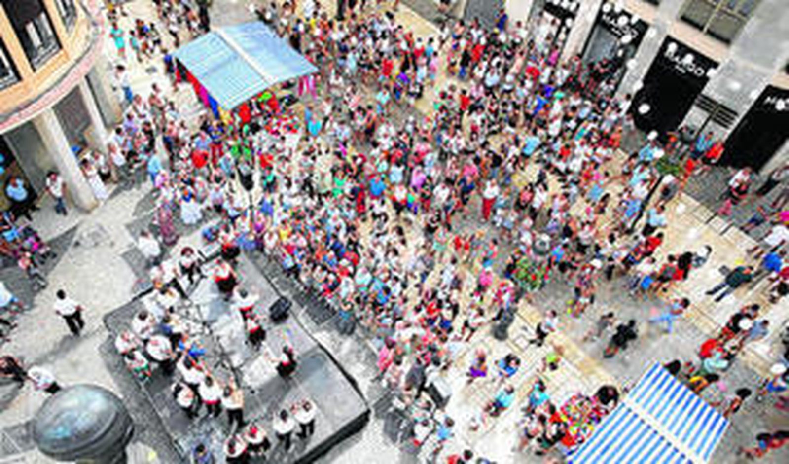 Después de ver un coro cantando en Liborio García, se podía subir con soltura hasta el tapón irremediable formado en la Constitución. Un grupo de chicos optaron por sortearlo por el Pasaje Chinitas. Iban camino de otro mogollón, el de la plaza Mitjana y alrededores. Su siguiente parada, según el ambiente y los planes sugeridos por los agregados a una comitiva que en cada parada se ensancha, sería Uncibay. La Feria se vive a ras de suelo. En las mesas al aire libre, donde al menos una decena de amigos cantaban hasta desgañitarse en un bar de Alcazabilla -con el ridículo bien lejos, de vacaciones-. En las calles, detenidos para observar y participar en un tablao improvisado. En las plazas, bailando los éxitos de Rafaela Carrá, coreando las letras cantadas una y mil veces con tantas ganas como si no hubiese un mañana.