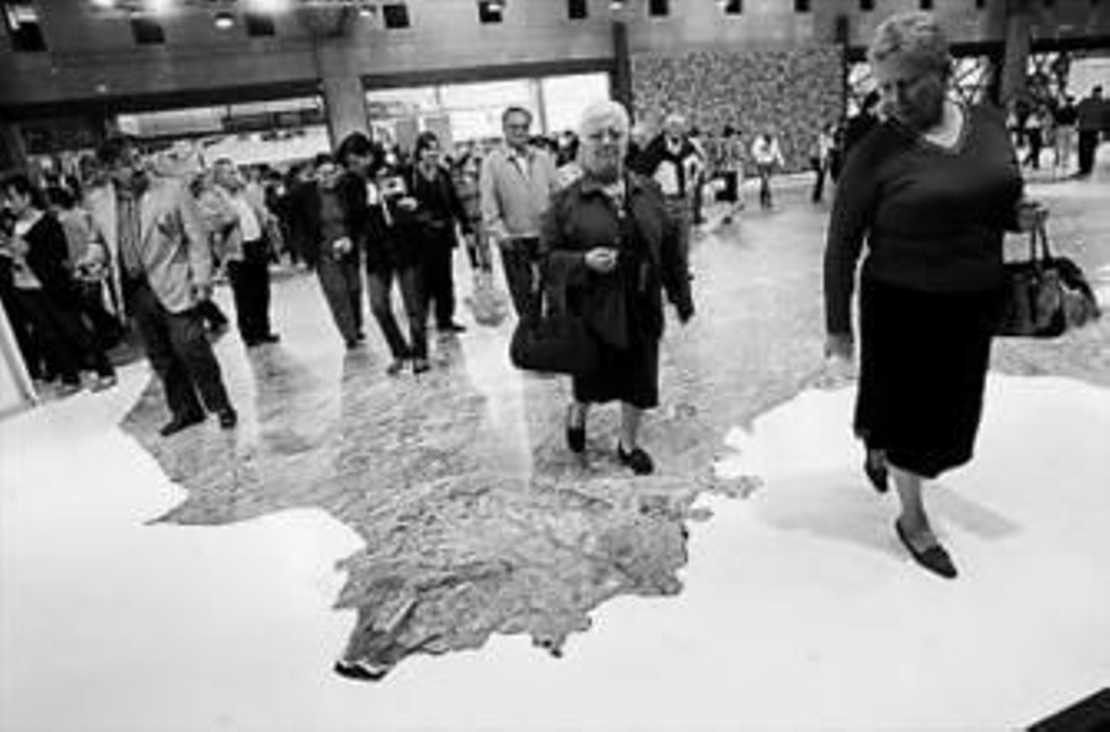 Las pantallas táctiles junto a la entrada provocaban la mayor expectación entre los visitantes al mostrar los aspectos históricos, gastronómicos o incluso arqueológicos de la ciudad. El vistoso mapa verde de Málaga adornaba la entrada del recinto y hacía que los presentes detuvieran su marcha para encontar el nombre de su localidad plasmado en el suelo.