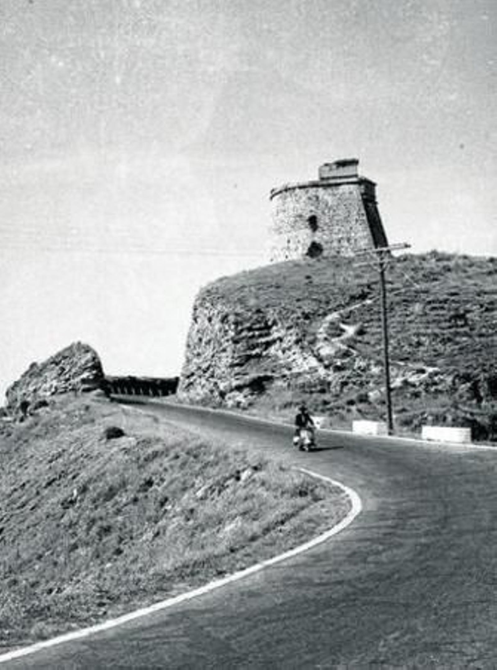 Un motorista con sombrero pasea en una Vespa por una solitaria y desconocida N-340. Eran los años 50 y faltaba poco para que esa carretera se convirtiera en el eje vertebrador de una de las principales áreas turísticas europeas. Pero mientras se producía la eclosión del turismo en esta zona de la Costa del Sol, una antigua torre vigía era la que dominaba todo el paisaje.