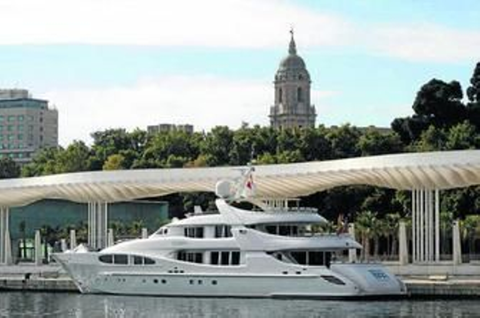 El barco de recreo 'Big Mak' hace una breve escala en el puerto de Málaga mientras navega por el Mediterráneo en espera de encontrar un comprador