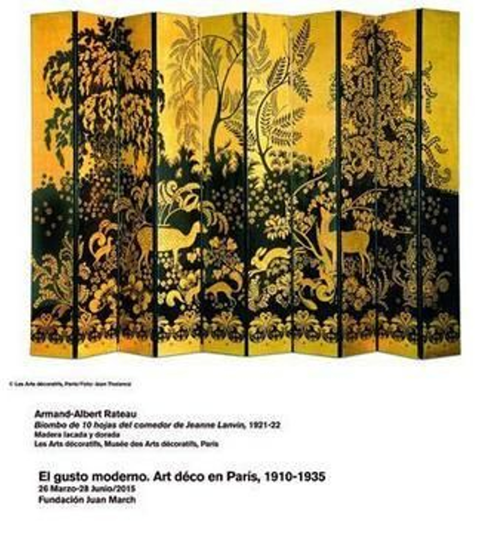 Dividido en ocho secciones, el recorrido legitima a través de 350 piezas de 122 artistas el viaje que emprendieron los creadores adscritos a este fenómeno. La Exposición Internacional de Artes Decorativas e Industriales Modernas de París de 1925 sería el hito que contribuiría a la enorme repercusión que alcanzaría el art déco, pero la exhibición de la Juan March retrocede hasta los orígenes, hasta las primeras décadas del siglo XX. La exuberancia de la escenografía y el vestuario de los Ballets Rusos de Diáguilev, que cautivaron a la Francia de 1909, o la aparición de revistas como Femina y la Gazette du bon ton sólo son algunos de los antecedentes, un campo de cultivo en el que también jugaron un papel importante los pintores cubistas, representados en la muestra por Picasso, Juan Gris o Albert Gleizes. En la exposición pueden verse desde los suntuosos interiores en los que tienen cabida los bellos biombos elaborados con laca japonesa firmados por el suizo Jean Dunand o las encuadernaciones y las joyas de Pierre Legrain hasta la irrupción de una mujer liberada del corsé y dispuesta a la aventura de la vida moderna que concibieron los diseñadores franceses. Son años en los que los creadores -Man Ray entre ellos- caen subyugados por el imaginario de África y se celebra en París la Exposición Colonial de 1931, un período en que elegantes automóviles y espectaculares aviones protagonizan ferias y una moderna cartelería anuncia trasatlánticos decorados con esmero por los diseñados del momento. Cierra la exposición, en el último tramo, el trabajo de algunos autores, como Le Corbusier, Charlote Perriand o René Herbst, que principalmente desde la Union des Artistes Modernes (UAM) se encaminaron hacia nuevas formas e ilustran con la audacia de sus obras la complejidad de un movimiento que, pese a la fama que aún le persigue, supo avanzar más allá de lo acomodaticio.