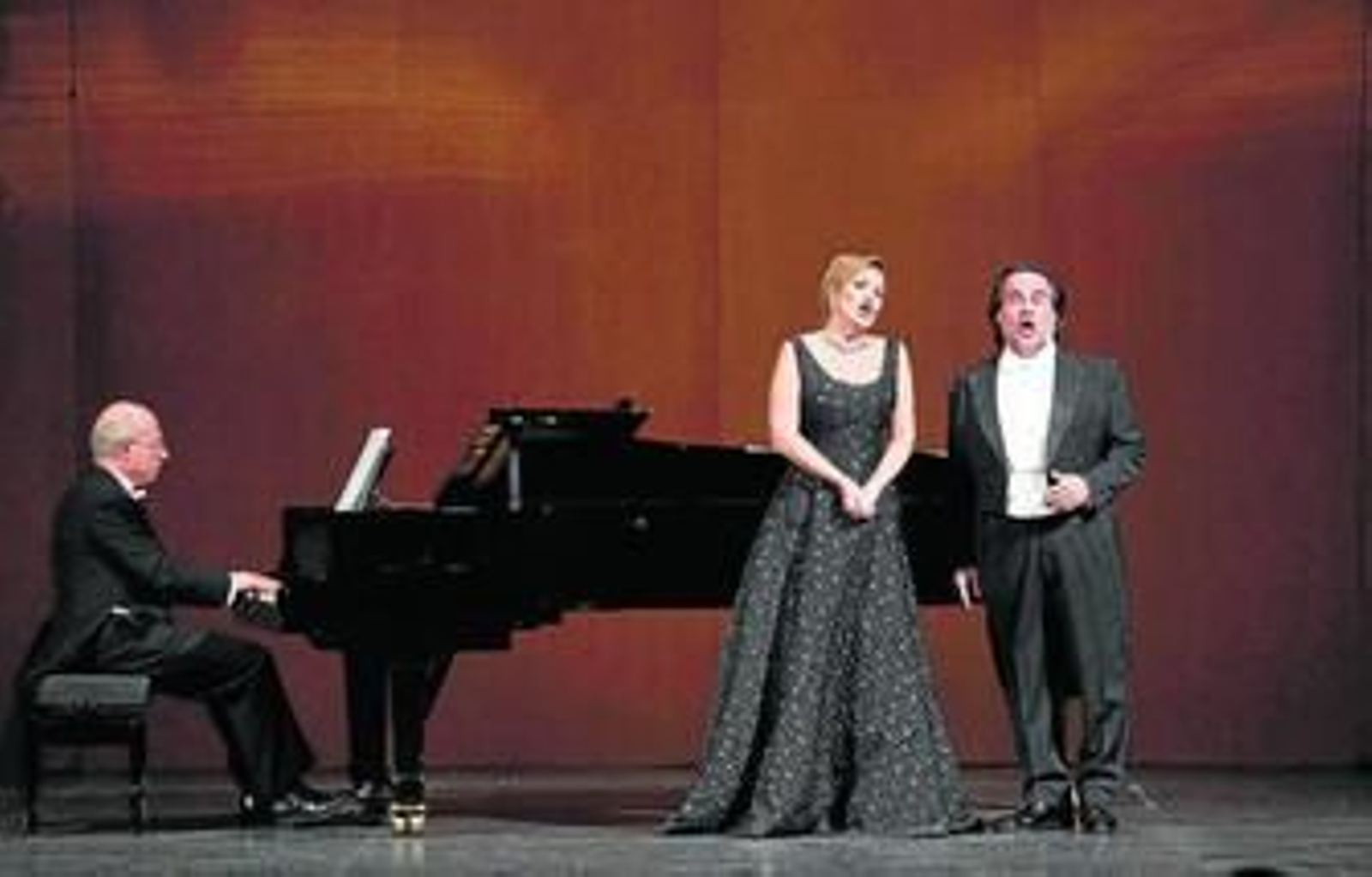 La soprano volvía a subir a las tablas, esta vez de rojo, para demostrar al público que se le puede añadir una pizca de ópera a las canciones de música ligera del brasileño Jaime Ovalle (Azulão), el argentino Carlos Guastavino (La rosa y el sauce) o el colombiano Jaime León (A ti). Algo así similar hizo, acto seguido, el tenor catalán con canciones españolas tan célebres como La de los ojos azules del Maestro Padilla o Amapola de José María Lacalle. Incluso se atrevió con unas coplas de Curro Dulce -no sin disgustar un poco a la crítica y enamorar a los aficionados del flamenco-.