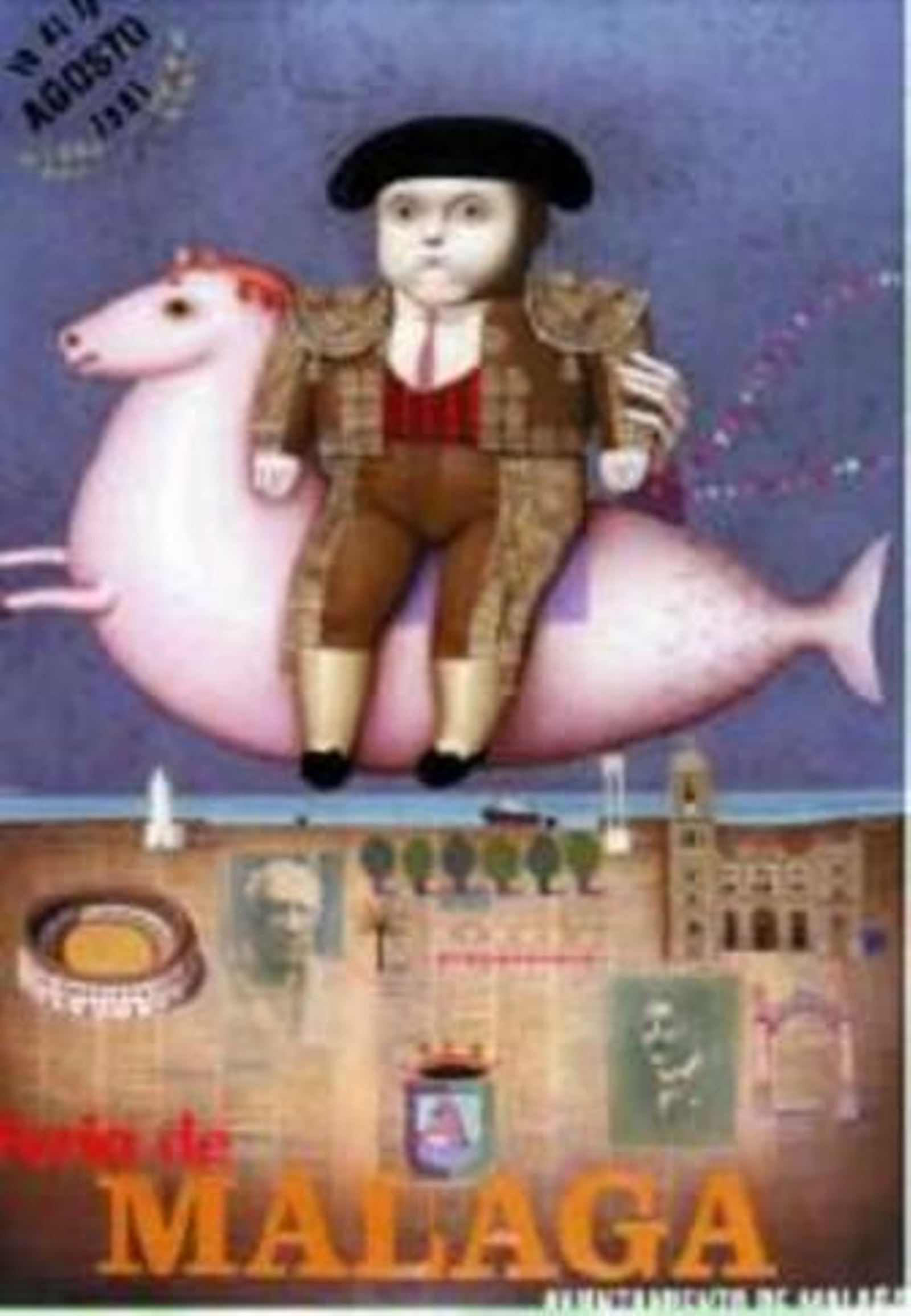 Un enano vestido de torero sobre un caballo de mar posa ante una ciudad representada por la plaza de toros y la Catedral. Desde luego, es una forma muy particular de entender la Feria de Málaga. "Béjar introduce su dinámica a través de una figuración propia que se proyecta en el enano torero y en esa especie de caballo-pez", afirmó Lorenzo Saval.