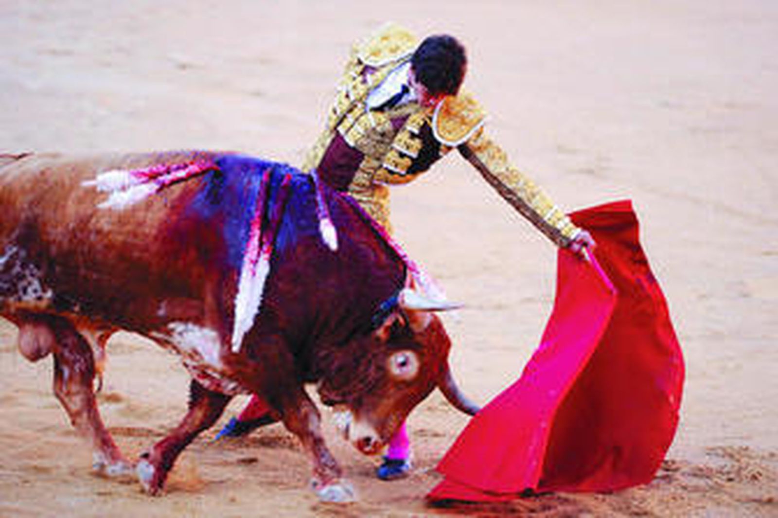 Sebastián Castella consiguió el único trofeo del fetejo y los momentos más impactantes -aunque a ráfagas-. Se hizo cargo del toro que hirió a El Cid y realizó una faena sin emoción ni eco, mal rematada con la espada. Con el tercero, manejable y mirón, labor extensa, con dos partes muy diferenciadas. En la primera, lo mejor llegó con la izquierda, con algunos naturales sueltos de calidad. Luego, el francés apostó por impresionar al mocerío con muletazos como el péndulo y una tanda con la diestra en cercanías, única en la que hubo ligazón. Mató al primer envite y le concedieron una oreja. Cumplió con el quinto, un animal noble, que humilló, pero que se rajó de inmediato, al que recibió con un largo y variado saludo capotero. El comienzo de la faena fue volcánico, con tres muletazos por la espalda, bellos muletazos del desprecio y un par de suaves pases de pecho. Con la diestra pergeñó una serie muy entonada, con los pases engarzados. Pero, a partir de ese momento, el toro se rajó y ya no hubo rima -ligazón-.Una prosa a secas. El triunfo se evaporó, máxime tras el desacierto que provocó con la espada.