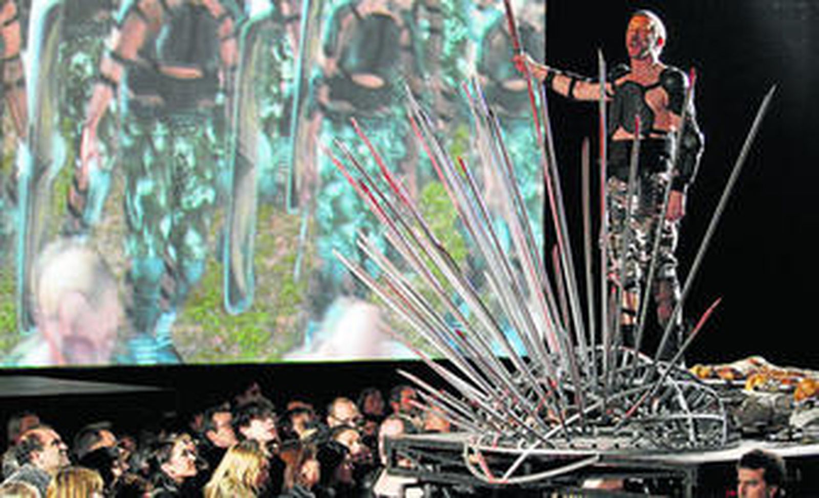 Las cuatro pantallas de vídeo alternan la proyección de los personajes, con fotografías e imágenes de la plaza pública romana o de la catacumba, a modo de elipsis. "Así hemos podido sustituir parte del texto poético. Las 272 páginas de Shakespeare se quedan en 35", detalló el director. Pero la Fura no sería la Fura sin el impacto emocional, marca de la casa. De ahí el aviso parta navegantes. "Hay gente que se desmaya por la mezcla de olores y sabores que les altera el sistema nervioso parasimpático", advierten. La mesa está servida.