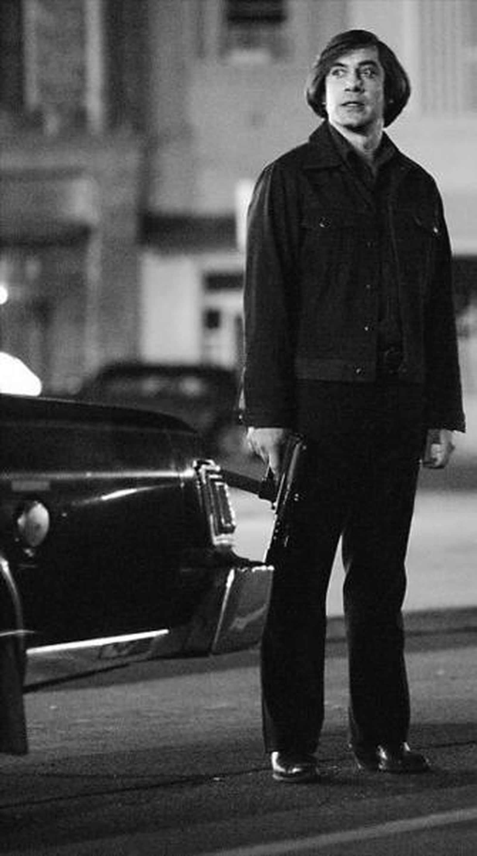 "El de Javier Bardem es un personaje que podía haber salido de Marte", han dicho los Coen. Y tienen razón. La fría arquitectura de esta película que yo catalogaría, no como un thriller ni como un pos-western, sino como una casi obra maestra de desolado terror, parece existir sólo para que Javier Bardem (Antón Chigurgh, el psicópata asesino contratado por unos narcos para que recupere dos millones de dólares desaparecidos) persiga como un androide más espantoso por ser humano al desgraciado Josh Brolin (Moss, un fracasado veterano del Vietnam que al encontrar accidentalmente los dos millones se convierte en la presa del psicópata) bajo la mirada angustiada de un Tommy Lee Jones (el sheriff Bell, un superviviente de tiempos mejores) que recuerda mucho al personaje de Frances McDormand en Fargo.