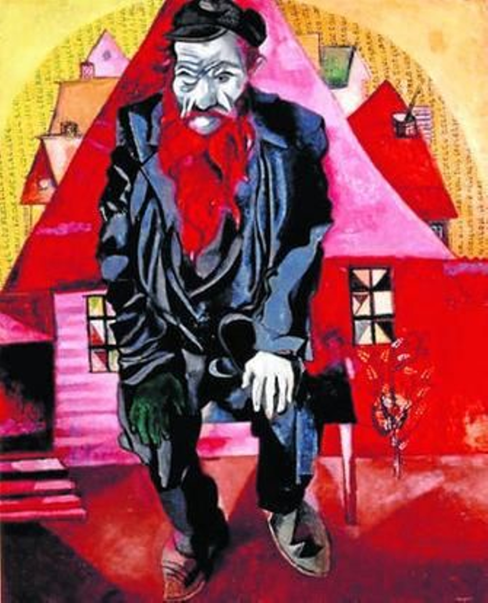 La mayoría de las dieciséis obras de Chagall incorporadas a la muestra son posteriores a 1914. Para entonces, el artista ya era un pintor respetado y cotizado en París, pero el estallido de la Primera Guerra Mundial le hizo volver a Vitebsk. Allí se casó, creó su propio hogar junto a la casa de sus padres y se dedicó a pintar estampas familiares y pintorescas, propias de la vida cotidiana en el pueblo. Así sucede en Tienda en Vitebsk (1914), en el que Chagall recrea la propia tienda de su padre, y en el que un personaje que abre una puerta en el extremo del lienzo "sugiere ya el principio de un cuento, de una narración; y es que todo en Chagall es relato y fantasía, tal y como se le reconoce, pero a la vez es mucho más", subrayó ayer Petrova. Las escenas familiares se suceden con Padre y abuela (1914), El patio del abuelo (1914) y Mariásenka. Retrato de la hermana del artista (1914; Mariásenka, por cierto, está representada también en otro cuadro anterior, de 1907); pero tampoco faltan los personajes comunes de Vitebsk, inmortalizados en Barrendero (1925), Soldados con panes (1914-1915) Viejo barbero (1914) y las dos representaciones de judíos: Judío en rojo (1914) y Día de fiesta (Rabino con limón) (c. 1925). En Los amantes azules (1914) comparece un Chagall ya pródigo en el dominio del color como trasunto de las pasiones, pero es en Paseo (1917) donde la ensoñación liberada en el centro de un mundo empeñado en destruirse alcanza el mayor fervor de la belleza. El mobiliario de una de las habitaciones de la casa familiar de Vitebsk, donada al Museo Ruso de San Petersburgo por las hermanas de Chagall hace veinte años, completa el proyecto expositivo (dando un tanto la razón a Kafka, por aquello de que todo hombre guarda una habitación dentro) con otros cuadros como el Autorretrato (1911) de Nathán Altman, Tía Sasha (1922-1923) de David Shtérenberg y Retrato de un desconocido (1918) de Róbert Falk. Y la memoria se complace.