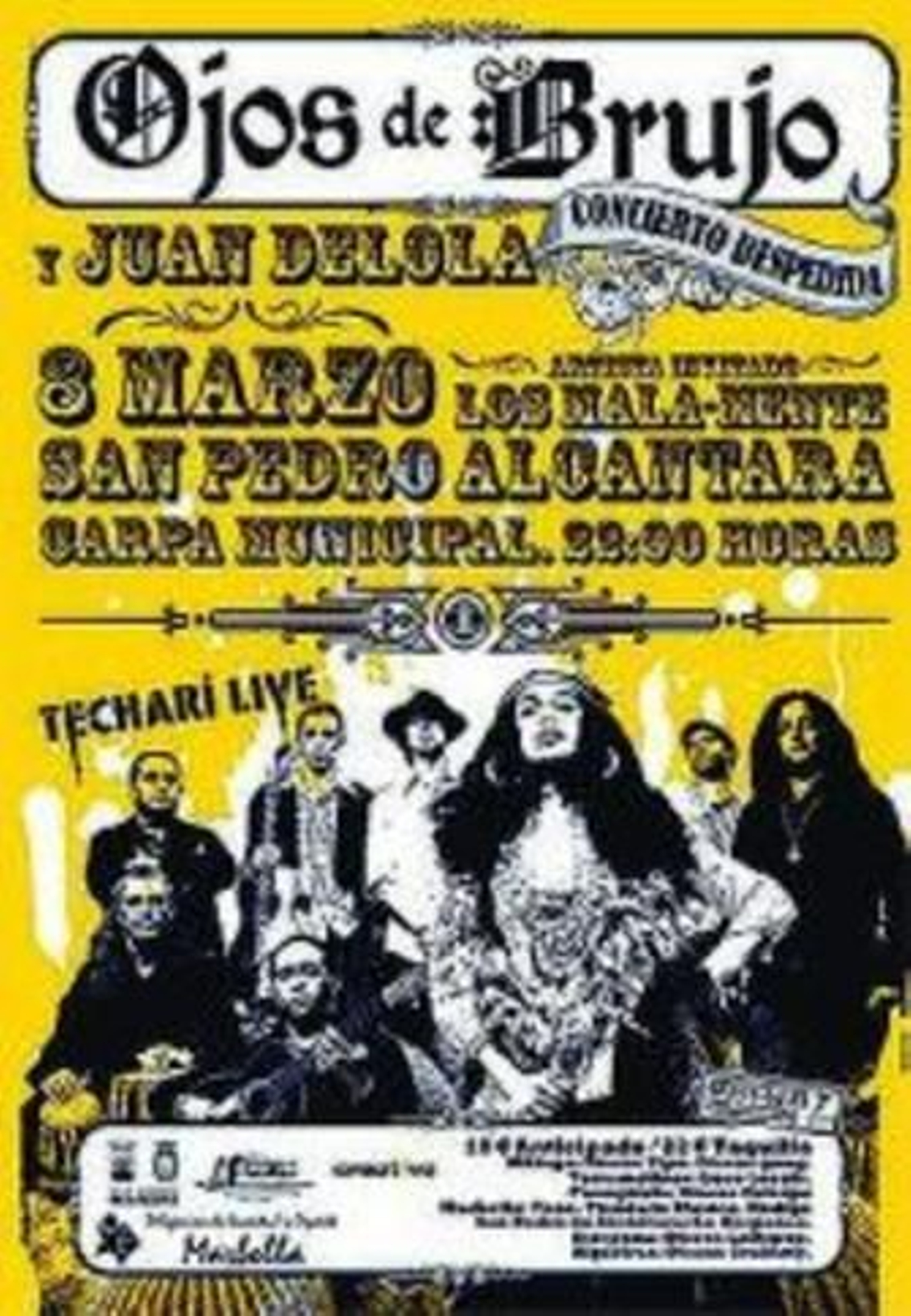 Llevan ocho años demostrando que los sonidos del mundo van más allá de un simple concepto. El nombre de Ojos de Brujo remite a hip hop, flamenco, rumba callejera, reggae, música electrónica y hasta hindú. Sus nueve miembros han agitado la coctelera de ritmos hasta comprobar que la mezcla convence. El próximo sábado 8 de marzo despedirán su actual gira Techjarí Live con una fiesta multitudinaria en la carpa municipal de San Pedro de Alcántara, acompañados de Juan Delola y Los Mala-Mente. El fin de fiesta coincide con el embarazo de su vocalista, Marina La Canillas, que dará a luz en mayo y se dedicará en los próximos años a su maternidad.