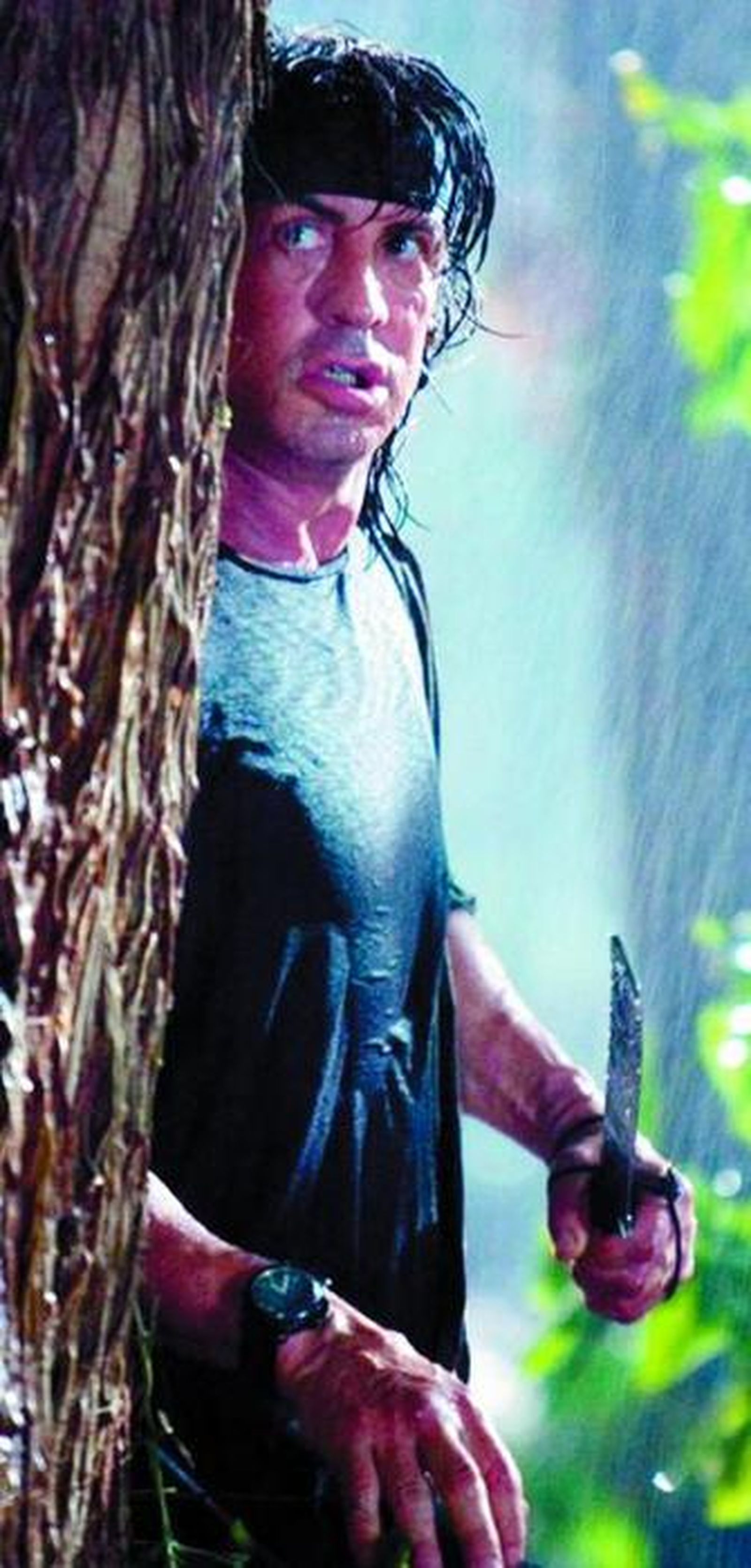 "Es un experto en guerrillas, entrenado para no sentir dolor y comer cosas que harían vomitar a una cabra...". Así le definía el coronel Trautman -Richard Crenna- en Acorralado, el mismo personaje que le buscaba la ruina en Rambo II en plena fiebre patriótrica. "No culpes a tu país por esto", decía Trautman -con cara de alcohólico despistado-. "¿Culparlo? moriría por mi país", respondía el boina verde para soltar a continuación su dosis de moralina. "Lo que yo quiero es que mi país me quiera tanto como yo lo quiero a él". Y después, Rambo se alejaba con los brazos casi en cruz por la sobredosis de esteroides, producto que tampoco faltará en Rambo IV: Stallone tuvo serios problemas legales en Australia cuando se le intervinieron esteroides como para surtir a todos los gimnasios del mundo.