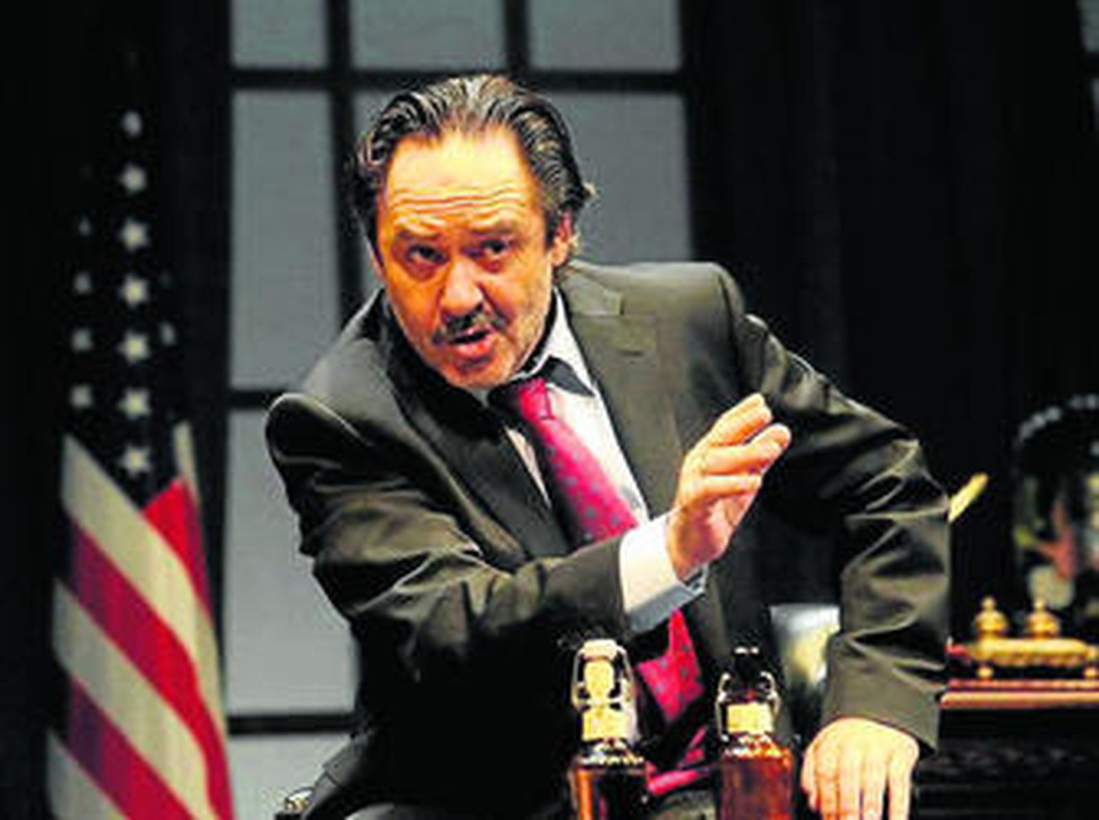 Quienes dicen por ahí que el teatro americano está agotado, sobre todo para los europeos, deberían ver Noviembre. Por más que la primera referencia que se venga a la cabeza sea ¿Teléfono rojo?, volamos hacia Moscú de Kubrick, la pieza constituye un feliz episodio de teatro americano, en sentido estricto: el Mamet que estrenó esta obra en los estertores de la Administración Bush es el mismo que prendió fuego al capitalismo en Glengarry Glenn Ross; es cierto que aquí adopta la comedia, y en plan salvaje, con toda la incorrección política de que ha sido capaz, sin escatimar mala leche y con un tufo a melopea que huele a kilómetros (quienes, por cierto, quieran buscar conexiones con los felices años 60 andarán equivocados: sólo una sociedad capaz de pintar una caricatura de Obama como supremo líder terrorista en la portada del New Yorker y rendirse a los encantos de productos televisivos tipo Family Guy puede parir un artefacto semejante), pero las claves siguen siendo las mismas: un desarrollo basado en el trabajo interpretativo y una trama que adopta forma de conflicto. Sólo que aquí el conflicto oscila entre el saqueo de la industria nacional del pavo y el bombardeo nuclear a Irán. Noviembre es una sátira abrumadora, de una arquitectura llena de pliegues que no deja respiro desde la primera escena hasta el dionisíaco final. La juerga padre, vaya. Pero también un digno exponente de una tradición teatral, la americana, que demuestra que con poco se puede decir mucho. Mamet insufló aires nuevos a este paradigma hace 40 años a partir del drama que ya preconizaron Albee, Williams y Miller. Ahora lo ha vuelto a hacer riéndose de todo bicho viviente. Y es, si cabe, más auténtico.