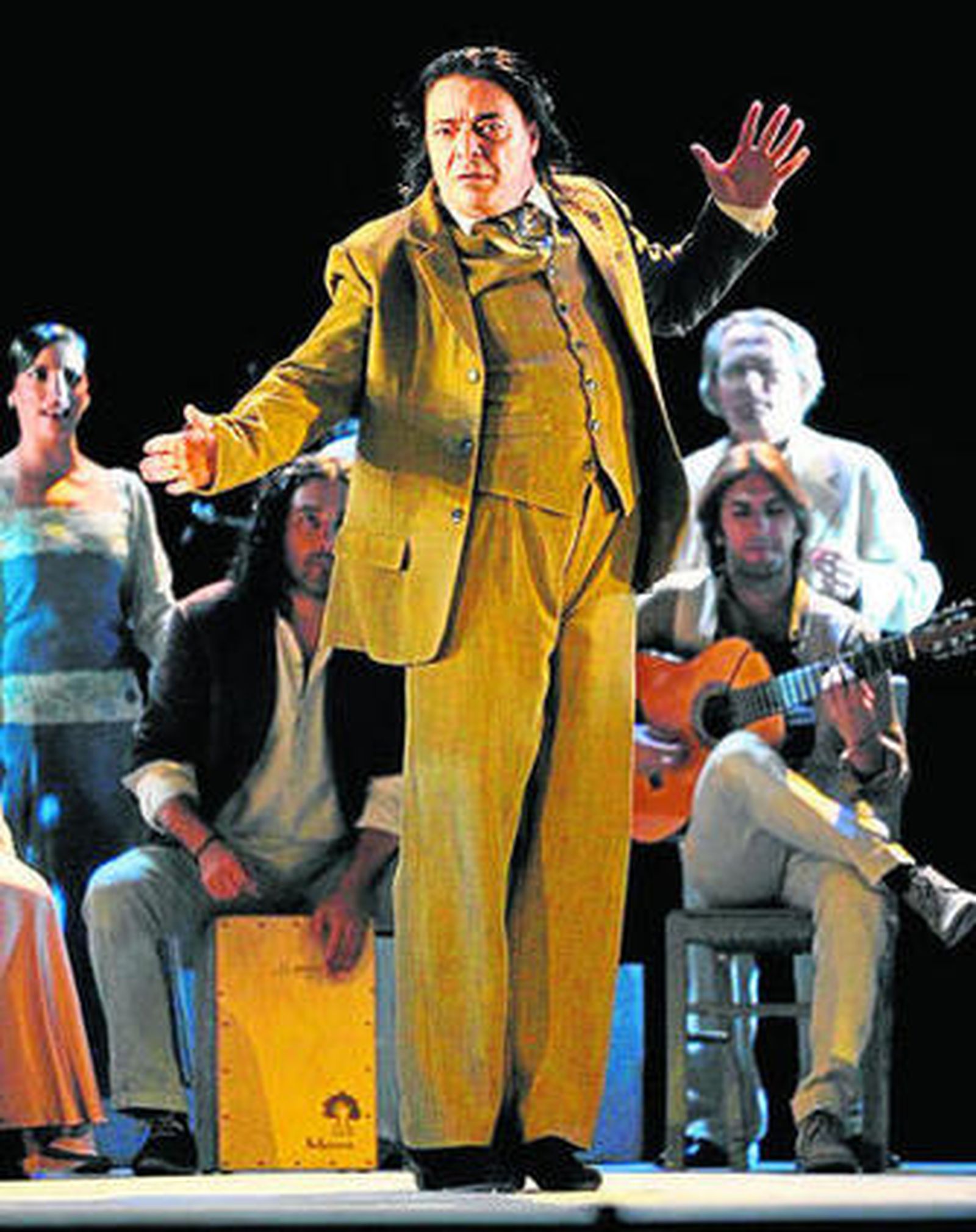 Con guiños a Granada a través de sus tangos y del Amor Brujo de Falla, junto a fandangos de Huelva y la música compuesta por Manuel de la Luz, Óscar Roig, David Chupete y Álvaro Paños, Olmo ha creado una escenografía que recoge los momentos más deslumbrantes de la vida del torero y su trágico final. Compuesta por seis escenas, presenta al principio la alegría de Ignacio Sánchez Mejías en su finca sevillana de Pino Montano, rodeado de los mejores escritores de su promoción, con Lorca, Alberti y, no podía faltar, su amante Encarnación López, La Argentinita, a la que da vida Patricia Guerrero, esa prometedora bailaora que Rubén Olmo ha comparado con Eva Yerbabuena y La Moneta.