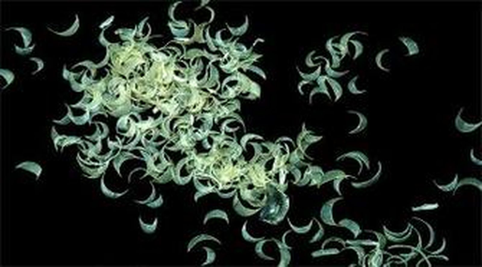En una de las fotografías construye una suerte de lluvia de uñas sueltas que traducen para la artista el paso del tiempo a través de su propio cuerpo. "Y se crea una paisaje de constelación y misterio", añade. Para atrapar a una libélula en la telaraña, Díaz Barbado recurrió a propio pelo. "Lo anudé en agujas y lo até luego sobre un fondo de terciopelo dentro de una caja de madera", comenta. En otra de las piezas, con el esmalte plateado sobre fondo negro tan recurrente en su obra, la artista construye un tríptico fotográfico con tarántulas.