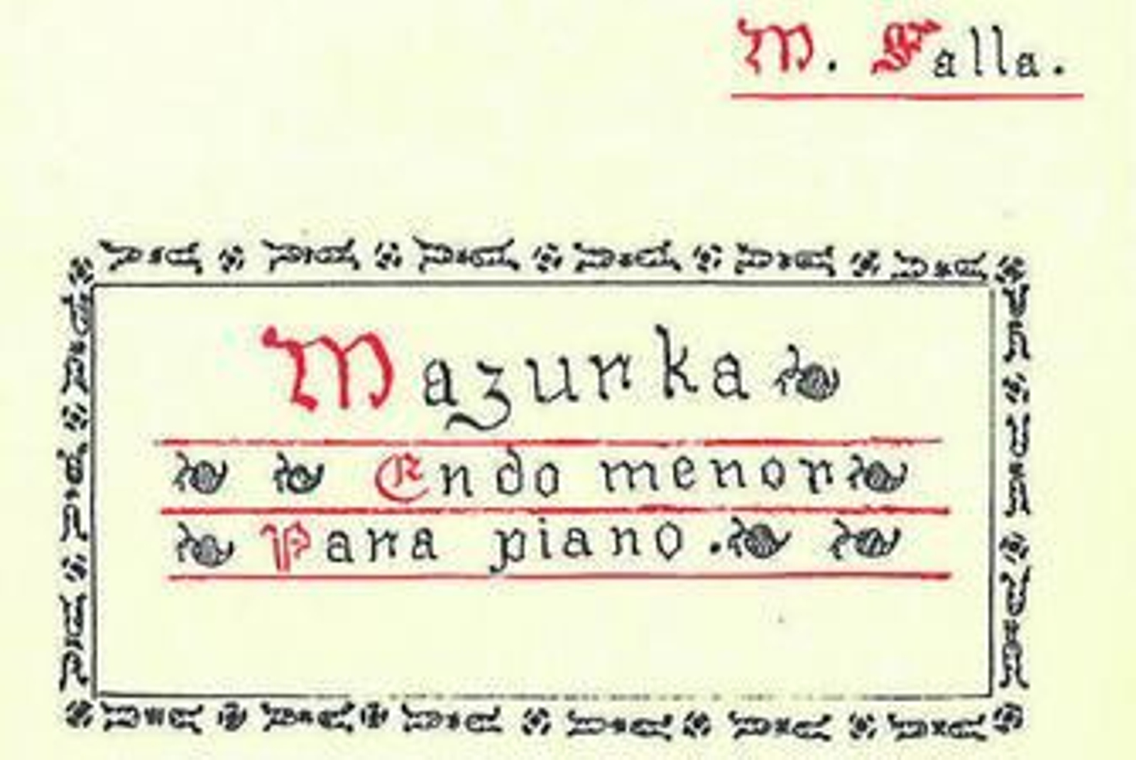 La presencia de Fryderyk Chopin puede rastrearse desde el comienzo mismo de la carrera musical de Manuel de Falla. En primer lugar, claro está, en su faceta de pianista. José Tragó, su profesor en Madrid, había estudiado en París con Georges Mathias, discípulo a su vez del propio Chopin, por lo que puede trazarse sin dificultad un hilo pianístico directo entre uno y otro. La inclusión de diversas obras del compositor polaco es constante en los primeros recitales y conciertos ofrecidos por el joven Falla, cuyo talento fue reconocido públicamente en 1905 con la obtención -"en buena lid", como escribe un crítico de la época- del prestigioso Premio Ortiz y Cussó.