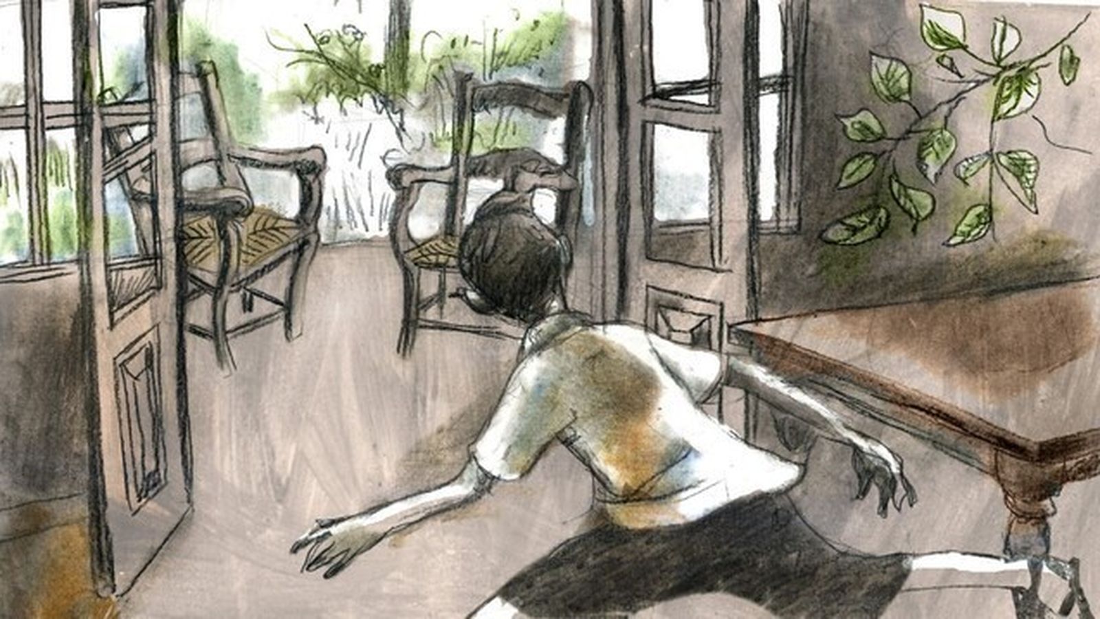 En el recibidor, junto a la chimenea y una mesa con cardos, estaba la pared con el panel de azulejos de Daniel Zuloaga, el ceramista del 98, que recreaba con aire de cómic varios episodios del Quijote que tanto me gustaban, sobre todo los dedicados a los odres de la venta y a los molinos de viento. A un lado estaba la puerta que llevaba al comedor, donde la larga mesa rectangular, a fuer de estrecha, parecía una lanza clavada en el aparador de la pared. Allí, a la luz del verano que entraba por los ventanales, a la que el tamiz de los visillos quitaba violencia, tenían lugar los desayunos, unas veces solo otras con alguno de mis primos, y sobre todo los almuerzos. No era frecuente, pero durante unos pocos días se reunía parte de la familia ocupando casi toda la mesa, larga y rectangular. Entonces, a la hora del almuerzo, las conversaciones cruzadas y banales, las risas y el ir y venir de fuentes y platos desde la cocina cercana, alegraban el ambiente.
