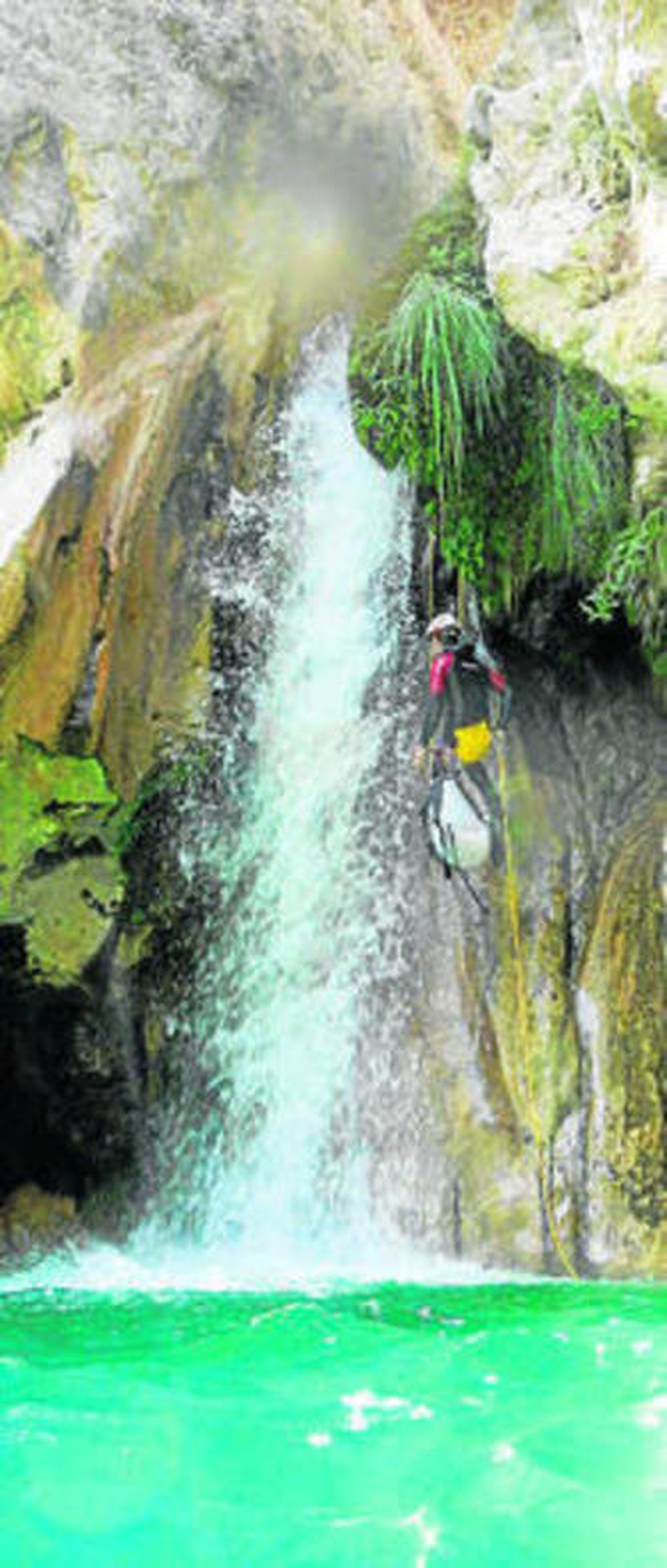 Sin embargo, para salvar estos posibles contratiempos existe una alternativa: el conocido como rápel guiado, en el que se realiza una instalación similar a una tirolina para que el descenso no se realice en vertical, sino de forma inclinada y alejándose gradualmente de la pared de roca y la caída de agua.
